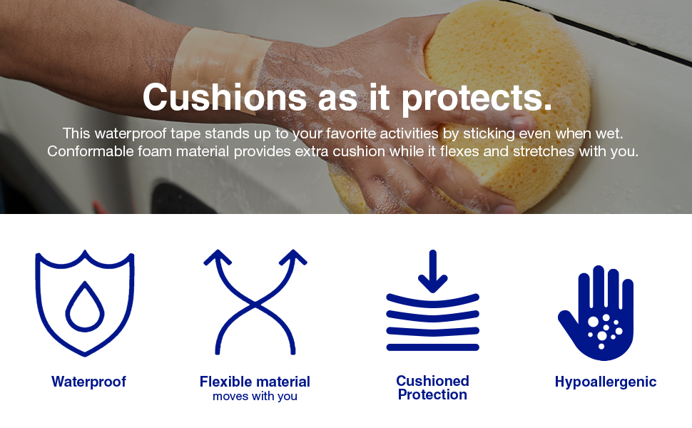 Fearlessly enjoy activities such as swimming, golfing, and tennis with the reliable protection of Nexcare™ Absolute Waterproof Tape. Designed to help protect and prevent blisters, this waterproof tape stands up to your favorite activities by stretching and flexing with your body. Your adventurous life is bound to come with bumps and bruises along the way–don't let minor injuries hold you back with the help of Nexcare™ Absolute Waterproof Tape.