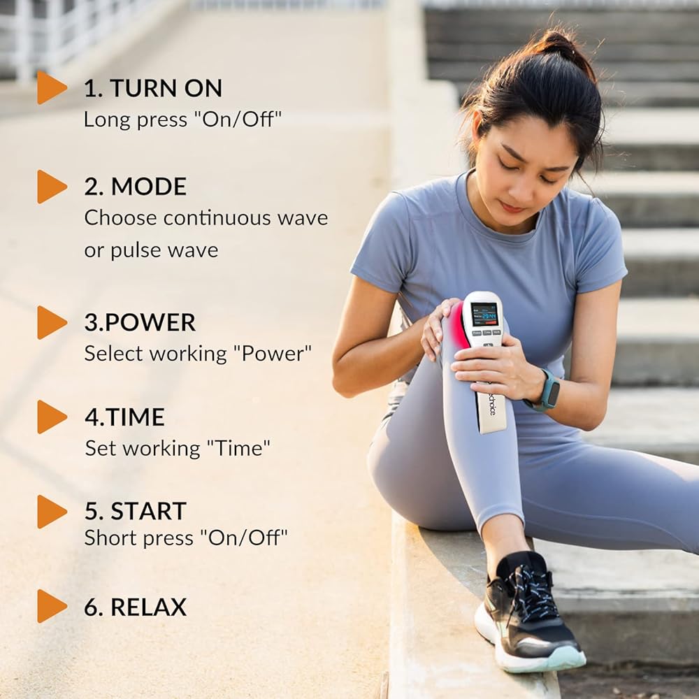 [لوحة عرض LED كاملة الألوان ومتعددة الوظائف] الطاقة: 25% 50% 75% 100% أربعة مستويات قابلة للتعديل؛ الوقت: من 1 إلى 60 دقيقة قابلة للتعديل؛ الوضع: موجة مستمرة CW وموجة نابضة PW عند 10 هرتز قابلة للتعديل (يُذكر أن PW متفوق على CW لمعظم التطبيقات). جهاز العلاج بالضوء الأحمر لتخفيف الألم محمول وصغير الحجم، وتدوم كل شحنة كاملة من 6 إلى 8 أيام، ويمكنك استخدامه أثناء الشحن. (ملاحظة: اضغط لفترة طويلة على تشغيل/إيقاف لتشغيل/إيقاف تشغيل الجهاز، انقر سريعًا على تشغيل/إيقاف لتشغيل/إيقاف الضوء).
