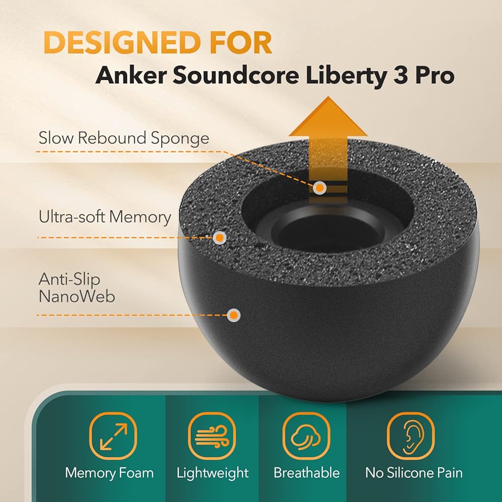【متوافق مع ساوند كور ليبرتي 3 برو】مقاومة للعرق ومتانة أفضل. تركيب بسيط ويناسب انكر ساوند كور ليبرتي 3 برو بشكل مثالي. لا حاجة لإزالة الرغوة عند وضع سماعات الأذن برو في علبة الشحن.