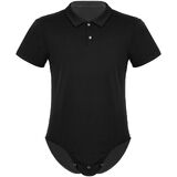 Short sleeves, turn-down collar with two fasteners, men's shirt design bodysuit, solid color