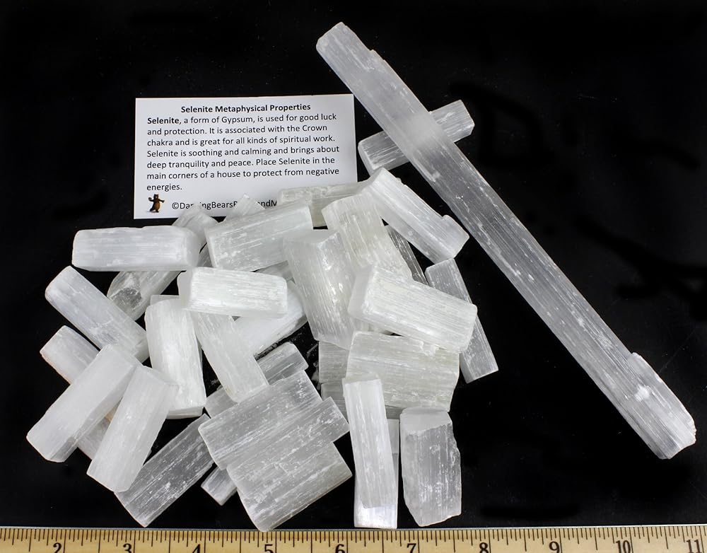 دانسينغ بير مجموعة عصي سيلينيت (35-40 قطعة) 1.5-2 انش طول × 0.25-.5 انش عرض لكل منها، مكافأة: عصا سيلينيت مجانية 6-8 انش وبطاقة هوية وريكي وشاكرا وشبكات حماية وحظ سعيد وطاقة ايجابية