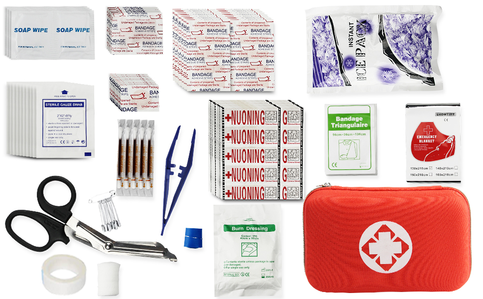 • 【Accident Ready】 This survival kit contains items that can make all the difference, including: instant ice pack, burn dressing, cotton swabs, emergency blanket, scissors, safety pins, bandages, gauze pads, etc. It's a great emergency kit for basic supplies.