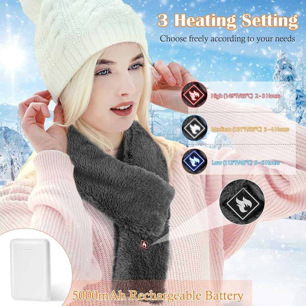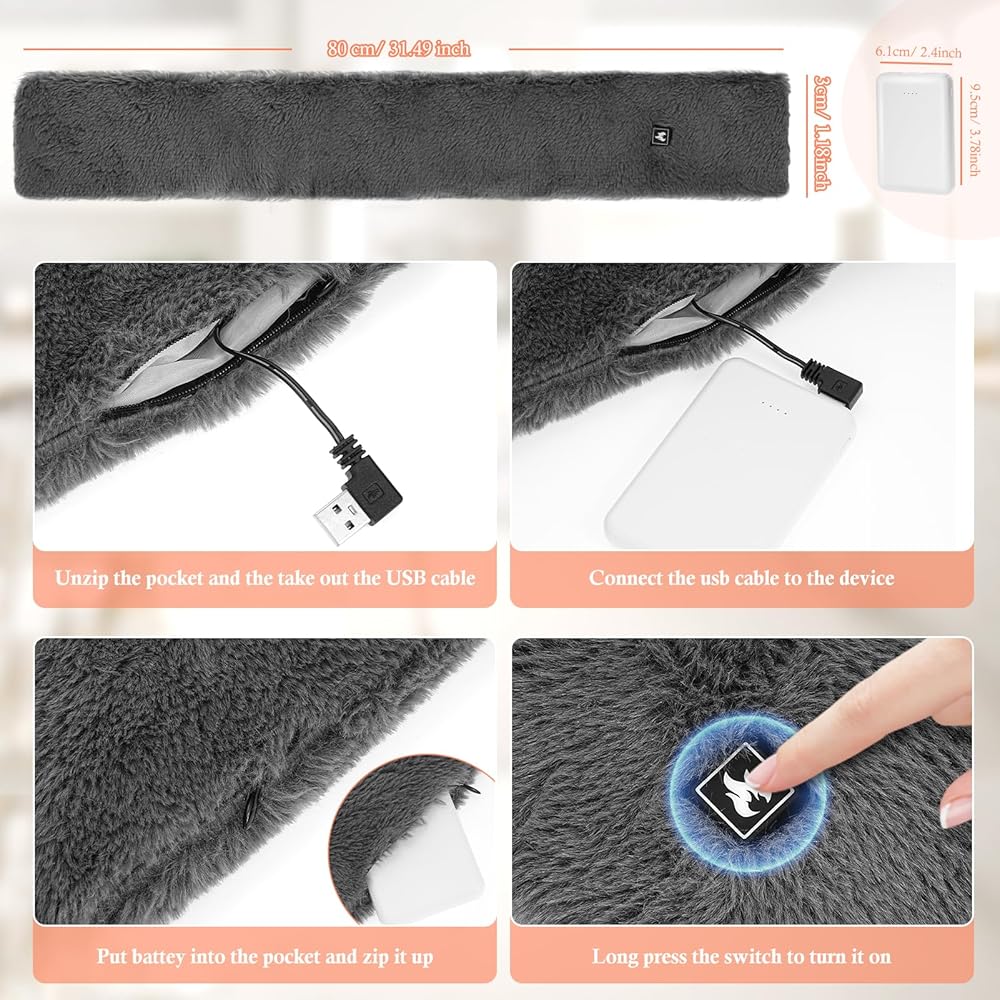 【يدفئك في أي وقت وفي أي مكان】وشاح التسخين USB مناسب للأنشطة الداخلية والخارجية لمنع قضمة الصقيع في الطقس البارد والحفاظ على الدفء! تميل العضلات إلى التصلب والتقرح في الشتاء، ويمكن لوشاح التسخين أن يخفف آلام الرقبة والكتف. إنه مثالي للأنشطة الخارجية مثل التخييم والمشي لمسافات طويلة والسفر وما إلى ذلك. كما أنه مثالي للاستخدام في المنزل أو المكتب.