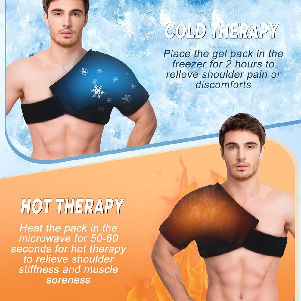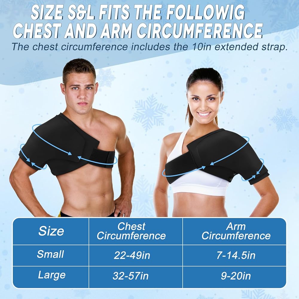 【جل مرن ومتساوي】: تبقى دعامة الكتف هذه ناعمة ومرنة عند تجميدها. تحيط حزمة الجل حول كتفيك، والعضلة ذات الرأسين، والعضلة ثلاثية الرؤوس، عبر المنطقة المصابة لتوفير ضغط يخفف الألم. لا داعي للقلق بشأن تسرب الجل مع الحافة المغلقة العريضة والغطاء السميك للغاية من النايلون.