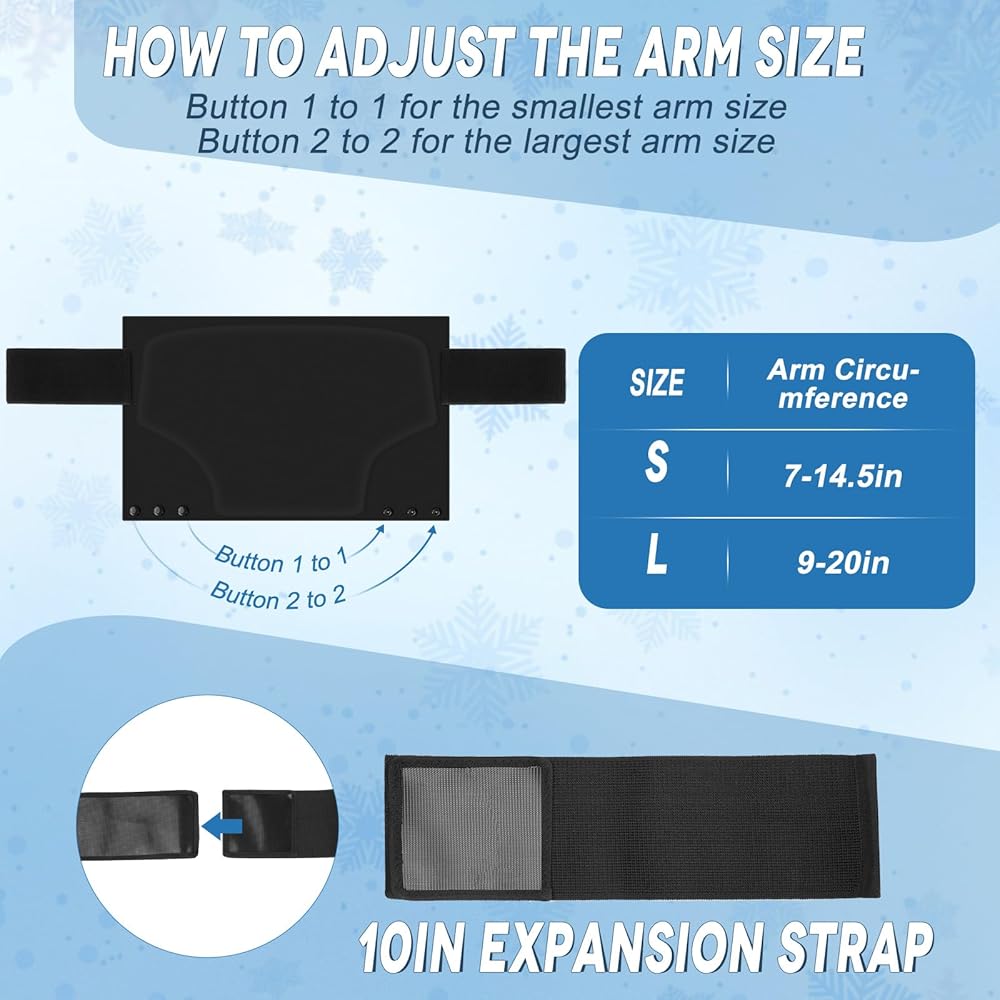 【حزام ممتد وحجمين】: تم تصميم حقيبة ثلج الكتف بمقاسين (S&L) وحزام مطاطي ممتد لاستيعاب أحجام مختلفة من الأشخاص. يمكن استخدامها للكتف الأيسر أو الأيمن. كما يمكنك اختيار زر الكفة وفقًا لحجم ذراعك.