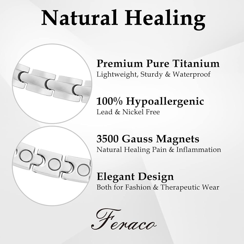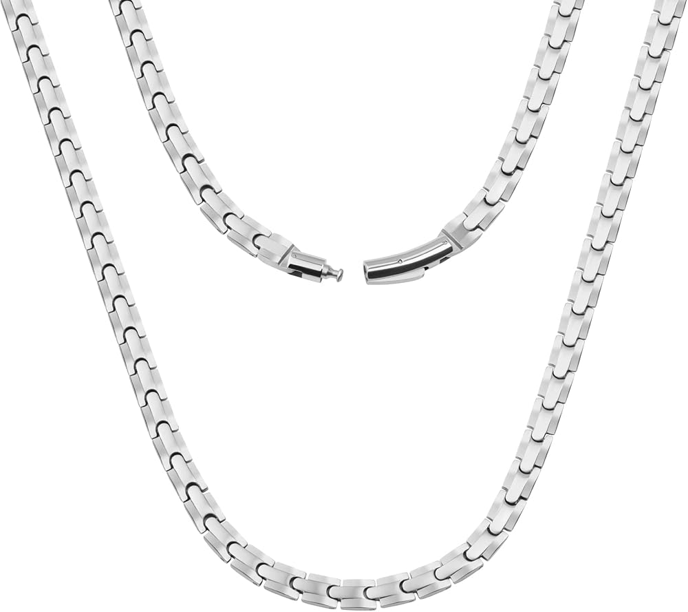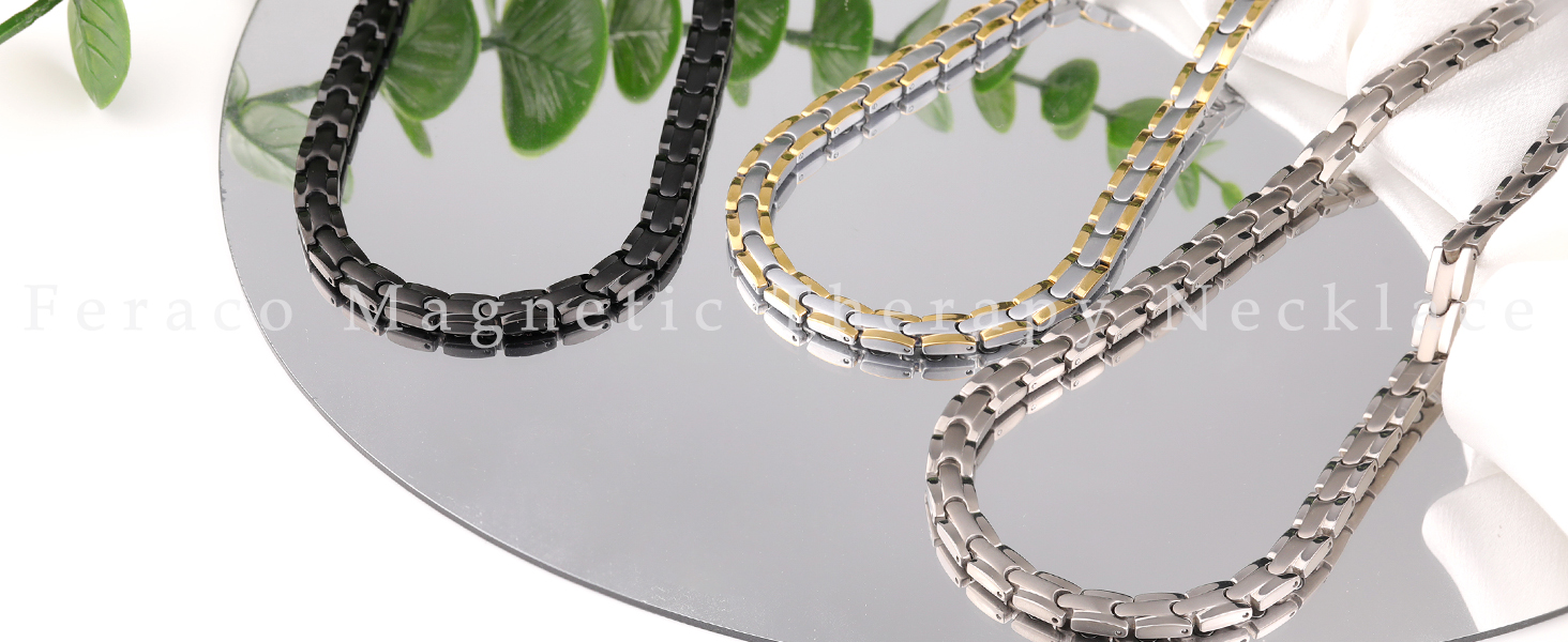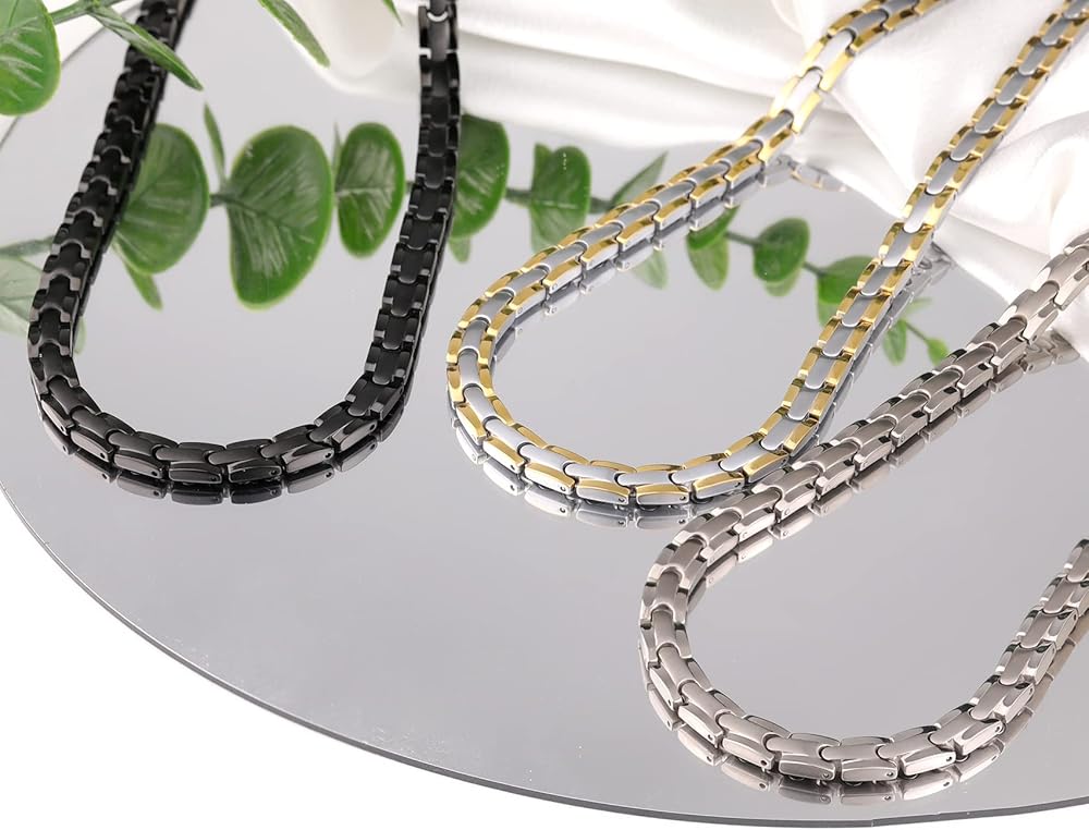 تيتانيوم نقي ممتاز: سلسلة التيتانيوم المغناطيسية للرجال مصنوعة من التيتانيوم النقي الفاخر، خالية من الرصاص والنيكل، لا تسبب الحساسية، مقاومة للماء، متينة والأهم من ذلك: خفيفة الوزن. إنه مريح في الارتداء، وفي بعض الأحيان لا يمكنك الشعور بوجوده.
