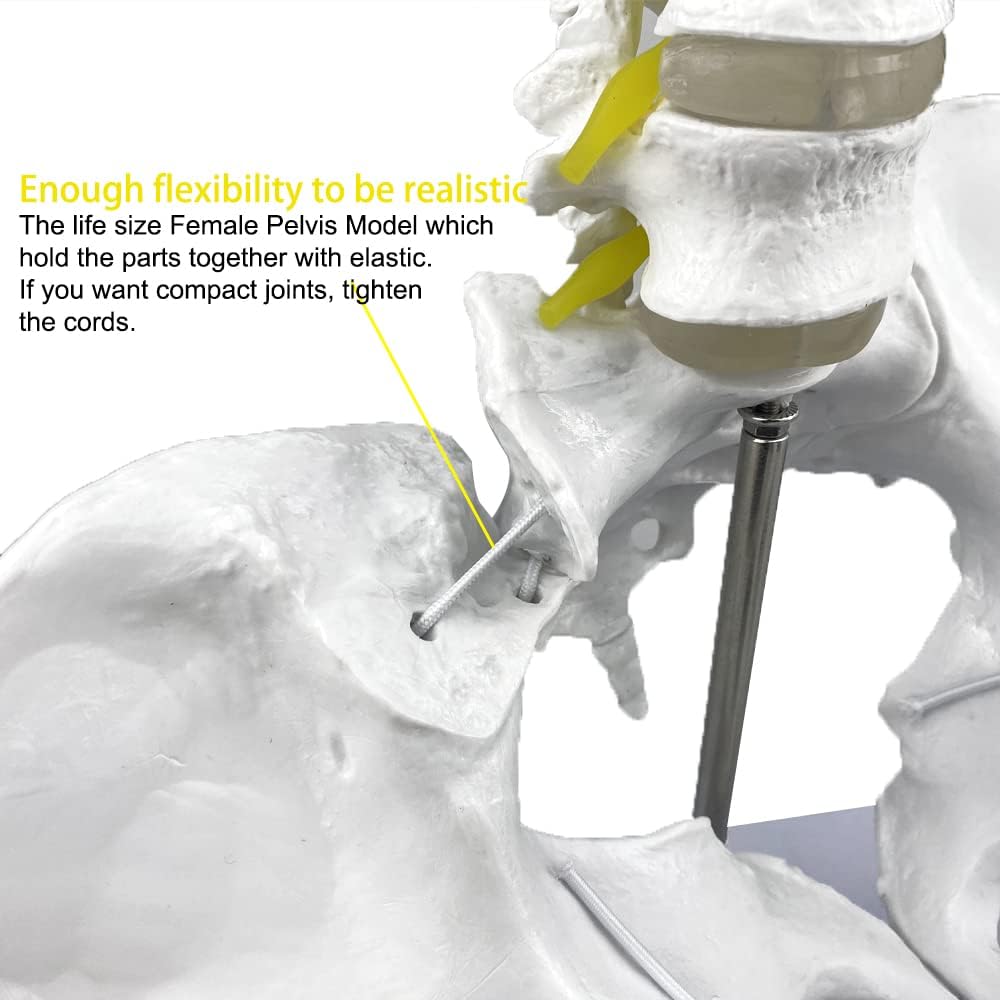 يأتي نموذج الحوض الأنثوي بالحجم الطبيعي مزودًا بقاعدة عرض تحرر يديك لتعليم أو إظهار حركة المفاصل أو العظام المختلفة.