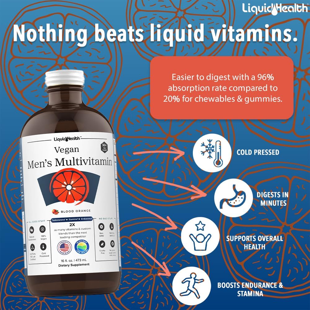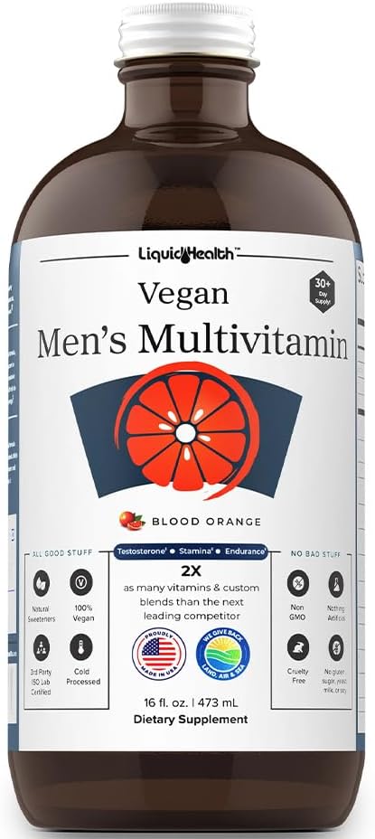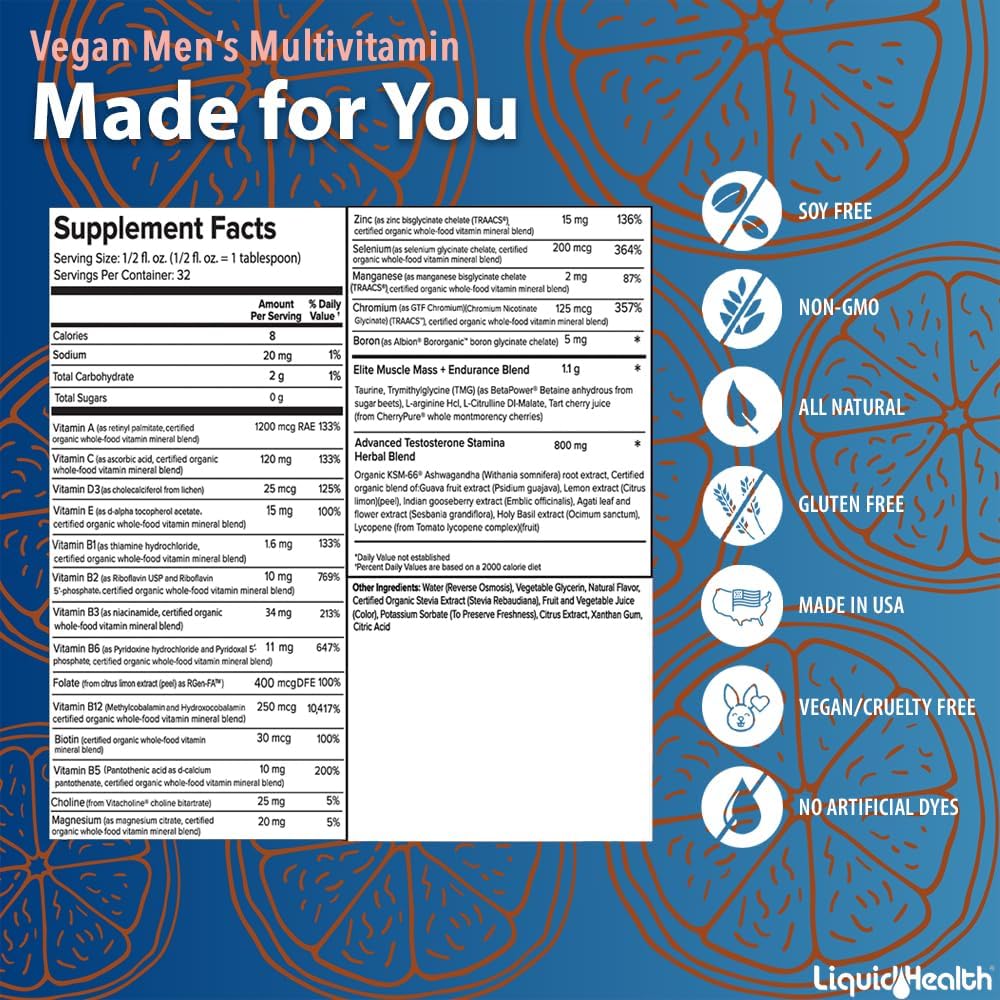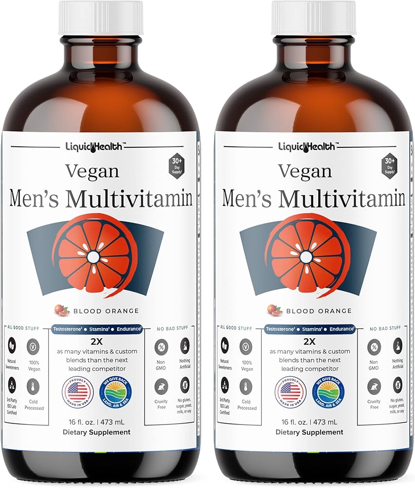فيتامينات سائلة نباتية متعددة للرجال من LIQUIDHEALTH مع مزيج عشبي أشواغاندا للرجال البالغين - مكمل أداء يومي لدعم القدرة على التحمل والقدرة على التحمل وتدفق الدم - نباتي، غير معدّل وراثيًا، خالي من السكر (عبوتان)