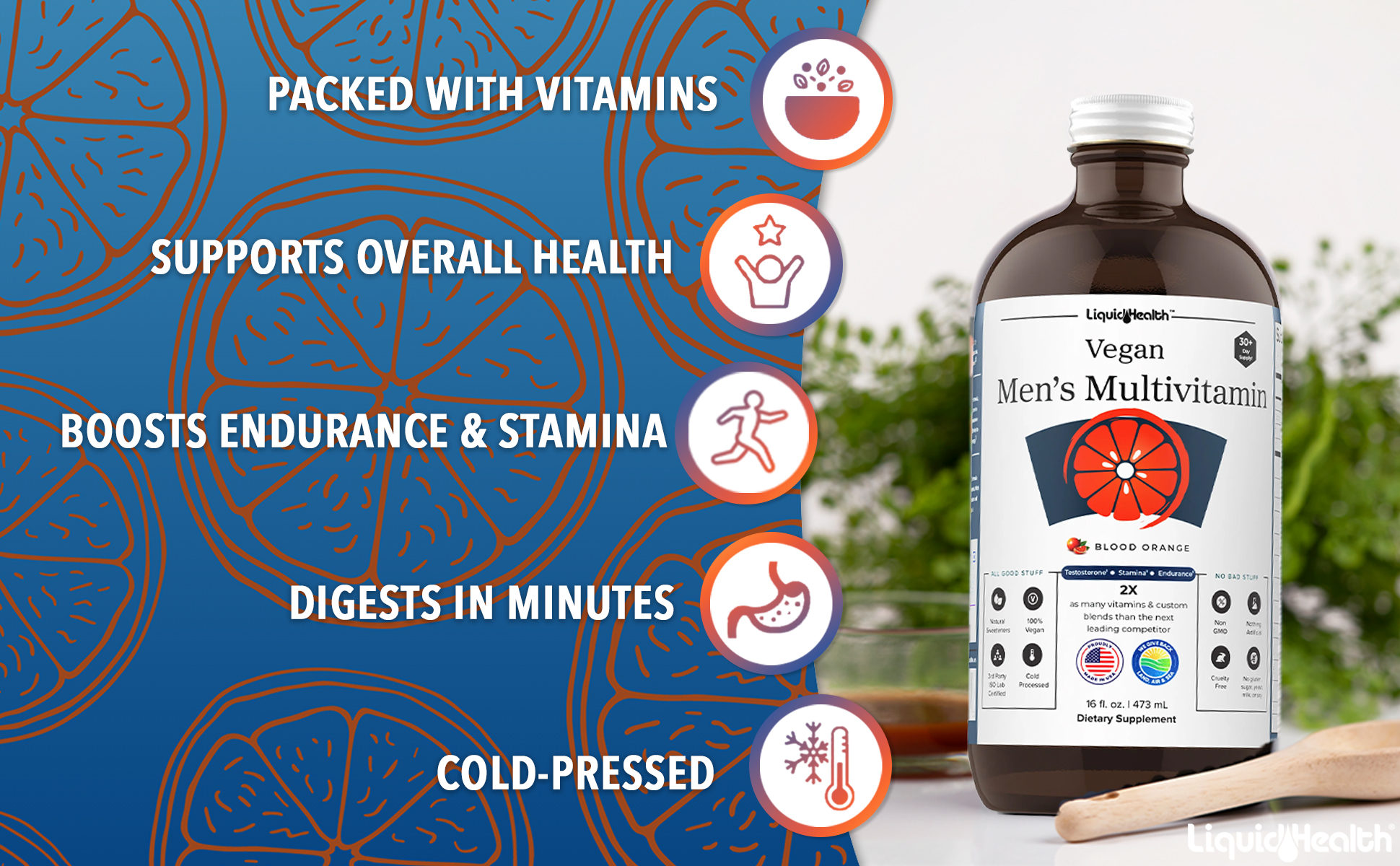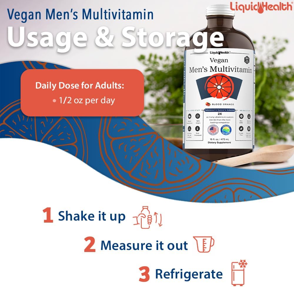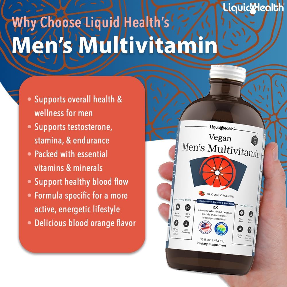 فيتامينات سائلة نباتية متعددة للرجال من LIQUIDHEALTH مع مزيج عشبي أشواغاندا للرجال البالغين - مكمل أداء يومي لدعم القدرة على التحمل والقدرة على التحمل وتدفق الدم - نباتي، غير معدّل وراثيًا، خالي من السكر (عبوتان)