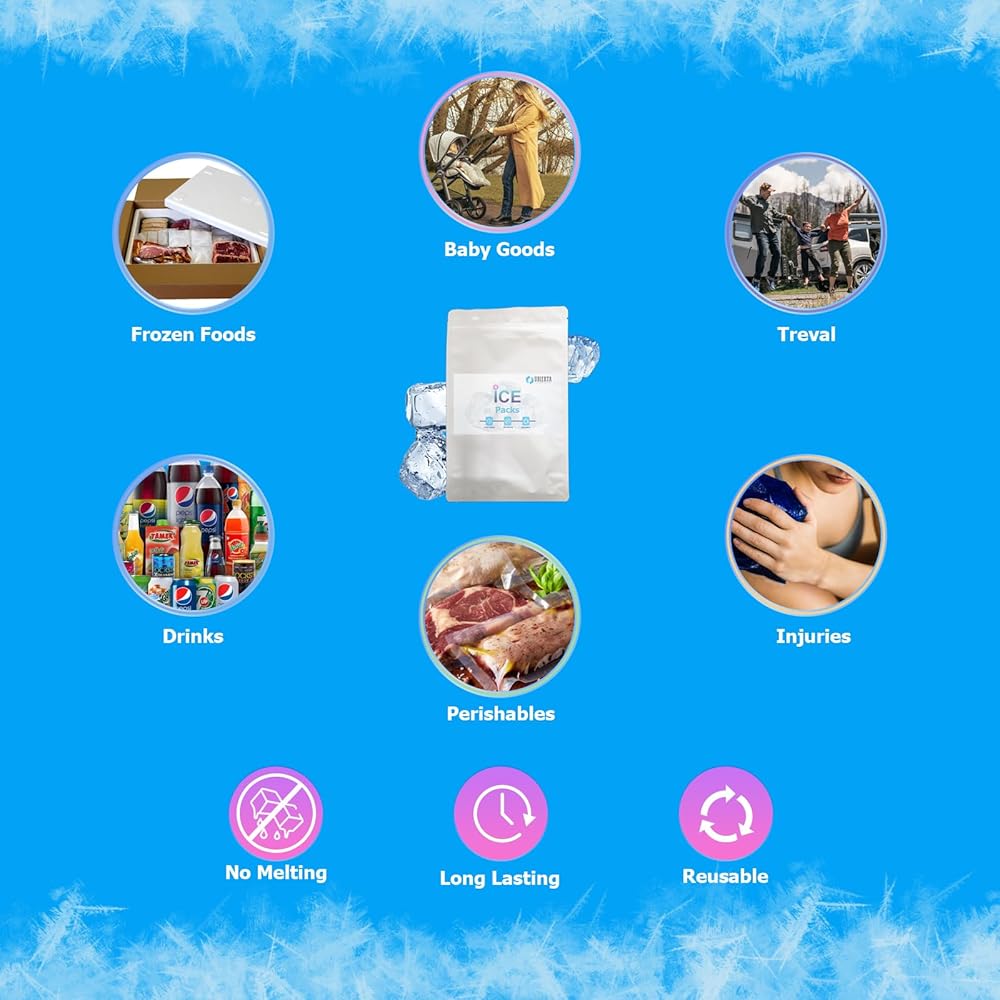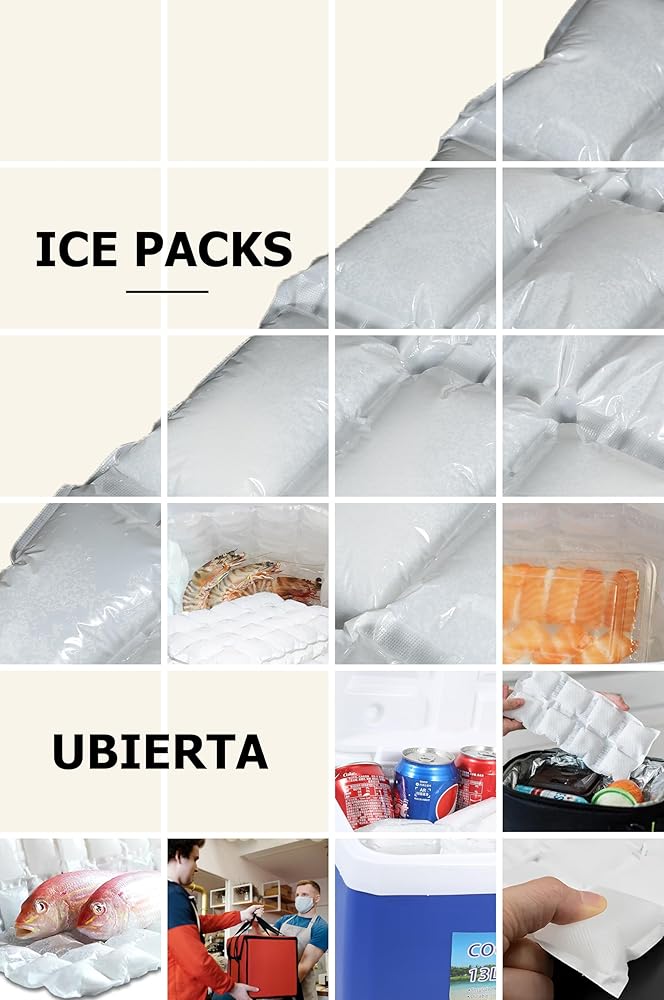 تعتبر عبوات الثلج الجاف الحل الأمثل لاستبدال الثلج. إنها تدوم أكثر من الثلج التقليدي، وتظل فعالة لمدة 4-7 مرات أطول بينما تبقى غير لزجة، وتدوم طويلاً، وآمنة لملامسة الطعام. هذه الملاءات مليئة بحبيبات الثلج الجاف الماصة، ولن تطلق الرطوبة عند إذابتها، مما يضمن تجربة خالية من المتاعب. مع Ubierta، يمكنك الحصول على فوائد التجميد الممتد دون إزعاج بقايا الماء عند الذوبان.