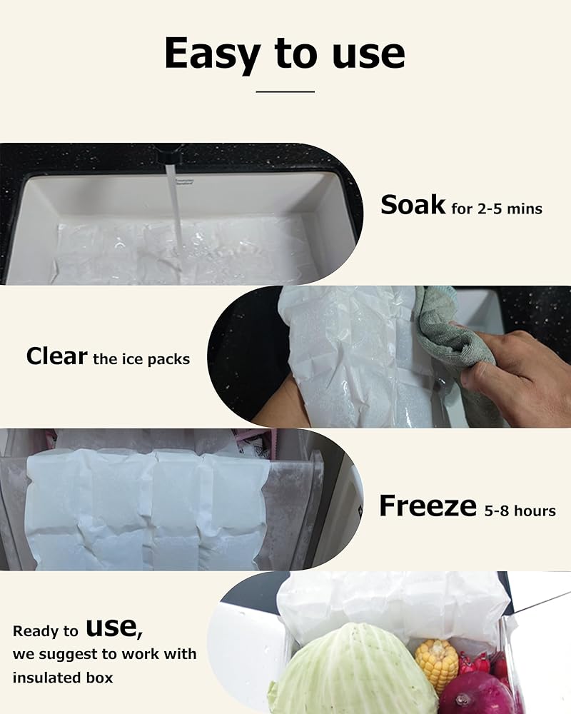 إن صفائح أكياس الثلج ليست مريحة فحسب، بل تدوم أيضًا لفترة طويلة. ويمكن تخزينها في الفريزر لفترات طويلة قبل الاستخدام. عندما تبدأ في الانكماش، ما عليك سوى إعادة ترطيبها عن طريق نقعها في الماء، ثم إعادة تجميدها للاستخدام المتكرر. سواء كنت تفضل حلاً قابلاً لإعادة الاستخدام أو يمكن التخلص منه، فإن عبوات الثلج الجاف من Ubierta تتكيف مع احتياجاتك، مما يجعلها خيارًا متعدد الاستخدامات لأي موقف.