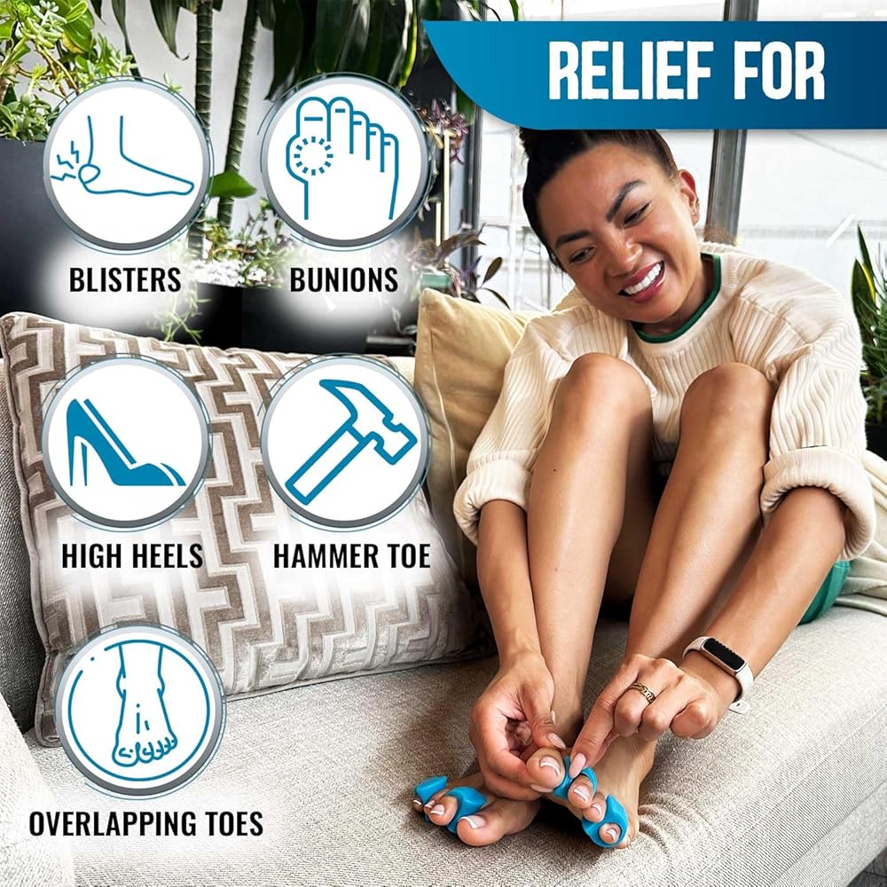 BUNION RELIEF; More than simply toe spreaders for women and men, our toe protectors help you get back on your feet; Ideal for bunion correction to help take pressure off contact points, they also function as a hammer toe straightener, allowing you to achieve correct form over time by gently stretching without pain