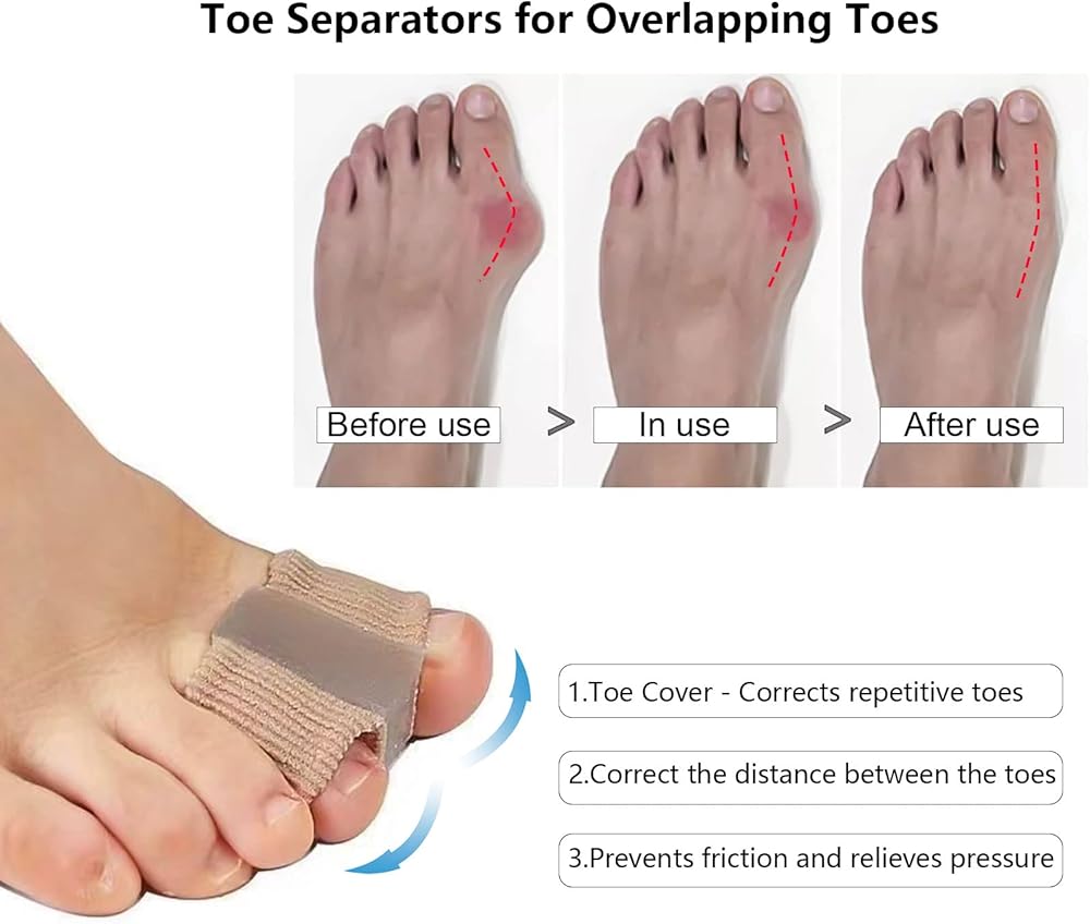 فواصل أصابع القدم للرجال، 6 قطع من مكواة فرد أصابع القدم الكبيرة لأصابع القدم المتداخلة للنساء، حلقتان لتصحيح الورم، فواصل مرنة لأصابع القدم، واقيات أصابع القدم لأصابع القدم المطرقة، وتخفيف الانحناءات