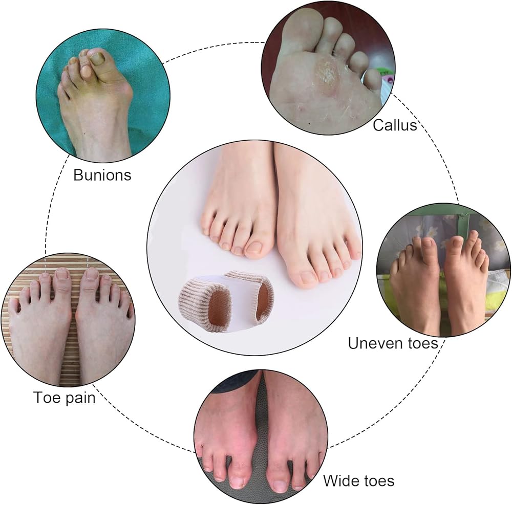 تخفيف الألم - تصميم إصبع القدم المنفصل يمنع الاحتكاك بين إصبع القدم ويقلل من ألم الضغط. يتم ربط أصابع القدم الصحيحة بالقدم، وتحمي مفاصل القدم، وتحافظ على الأورام في وضعها الطبيعي الأصلي، وتشكل بشكل مثالي وتمنع آفات القدم.