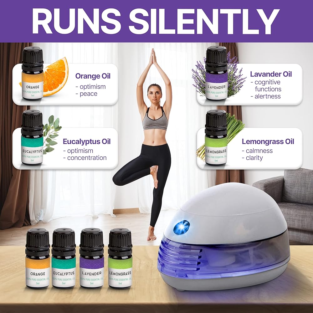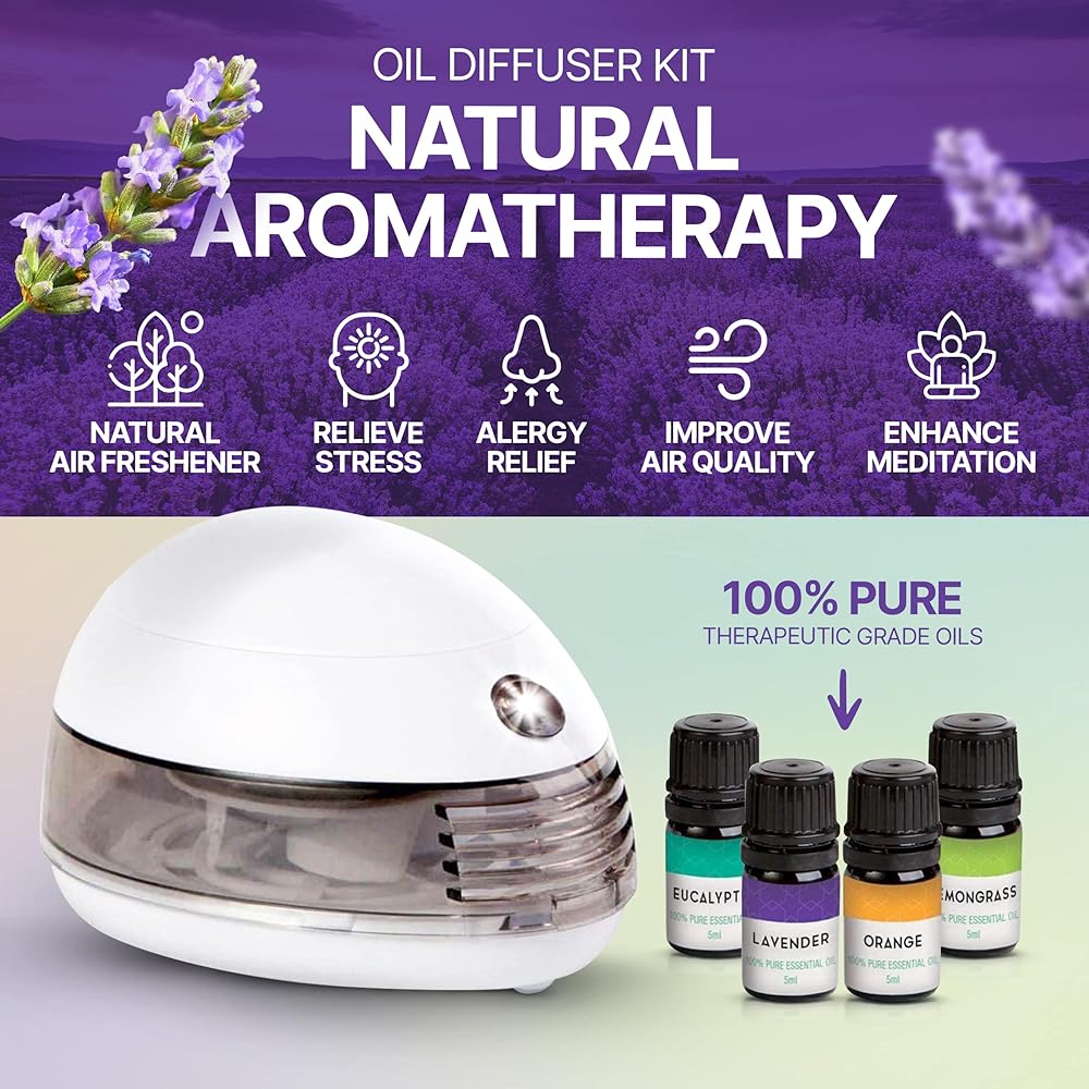 NATURAL AROMATHERAPY: Replace commercial air fresheners with an all natural essential oils set with diffuser and use our mini defusers for essential oils instead of other chemicals. According to the most recent studies, practicing aromatherapy can spread fragrance and improve quality of life, especially for people who want pleasant odors. Our office oil diffuser battery operated is made to breathfragrance, joy and happiness into any environment.