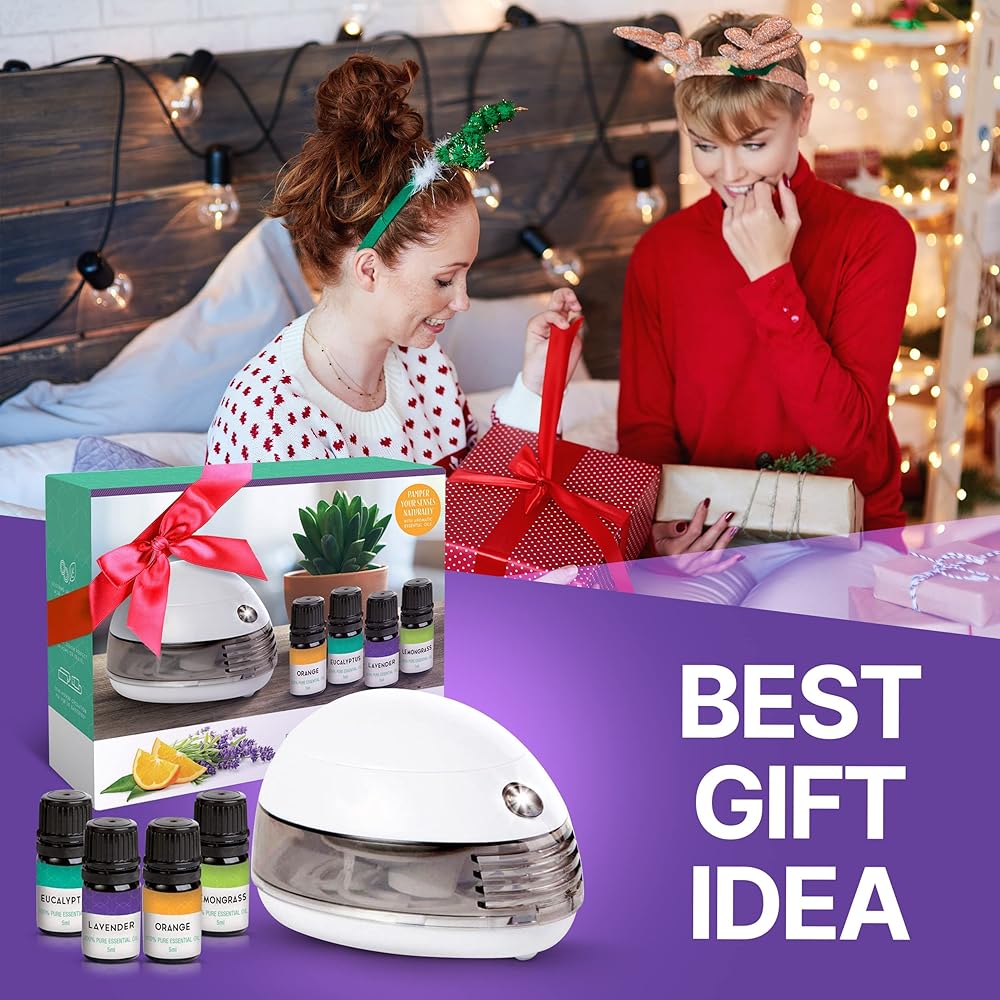BEST GIFT IDEA - The Best Blends Top 4 oils contains the cute battery operated oil diffuser gift for breathe, relaxation and spread fragrance.. These mini essential oil diffuser battery powered are used for aromatherapy, ayurveda, steam inhalations, skin care, massage, baths, saunas, air freshening, compresses, vaporization or chakra balancing.