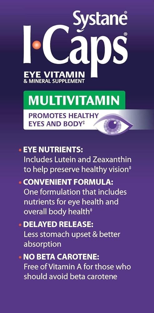 يجمع SYSTANE ICAPS Eye Vitamin MV Multivitamin بين احتياجات العين والجسم من الفيتامينات والمعادن في تركيبة واحدة لمزيد من الراحة. يتم تغليف كل قرص مؤجل الإطلاق لتقليل اضطراب المعدة وامتصاص أفضل.