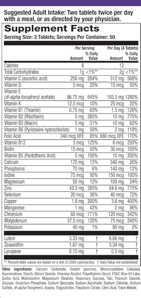يحتوي على: معظم المكونات الفعالة الموجودة في تركيبة AREDS
