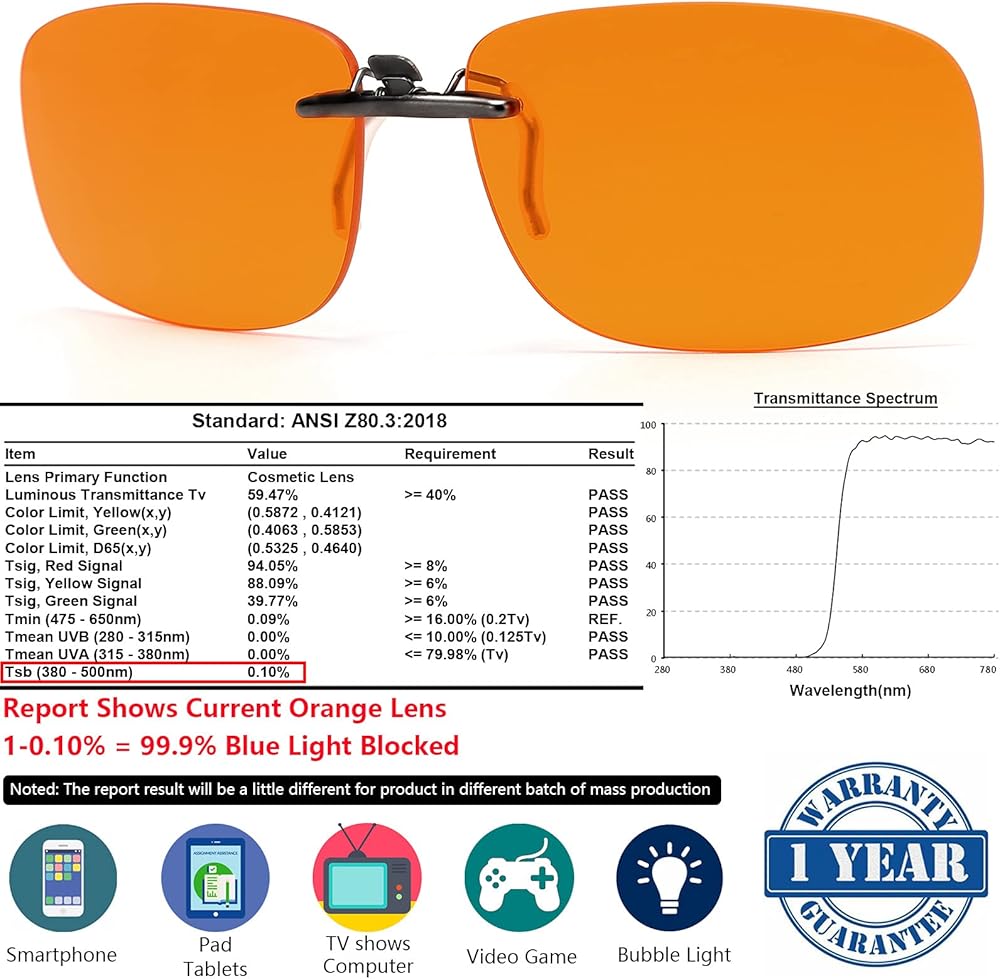 عدسات برتقالية للنوم بعمق والاستيقاظ منتعشًا - مع حجب الضوء الأزرق بنسبة 99.9%، وإزالة جميع الضوء الأزرق ووهج الشاشة تقريبًا، الضوء الأزرق يقلل من إنتاج الميلاتونين، مما يسبب الأرق؛ ارتديه قبل ساعتين على الأقل من وقت النوم، بدون الضوء الأزرق، يمكن لعقلك إنتاج الميلاتونين بشكل أسرع، مما يساعدك على النوم بشكل أفضل بشكل طبيعي.