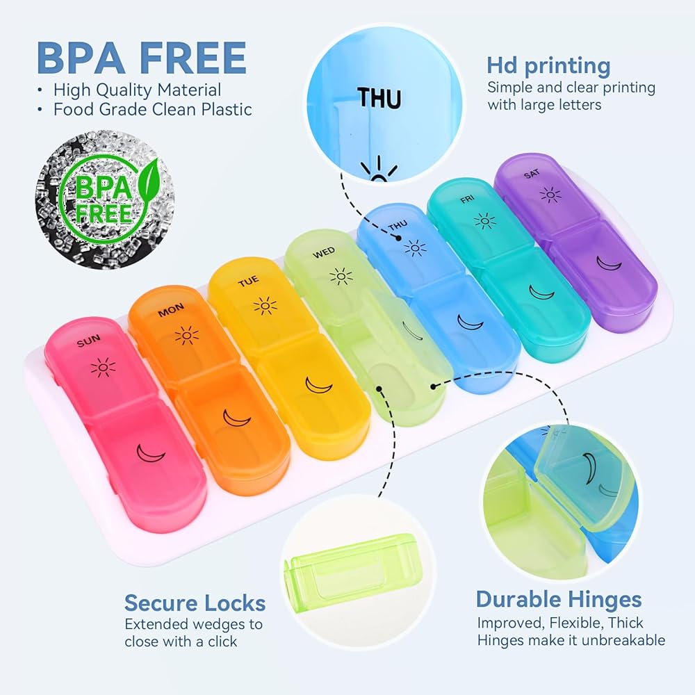 منظم حبوب الدواء مرتين في اليوم، علبة حبوب منع الحمل صباحًا ومساءً، منظم حبوب الدواء الأسبوعي، مقصورات كبيرة، يحمل الفيتامينات وزيت كبد سمك القد، صديق لالتهاب المفاصل، سهل الفتح