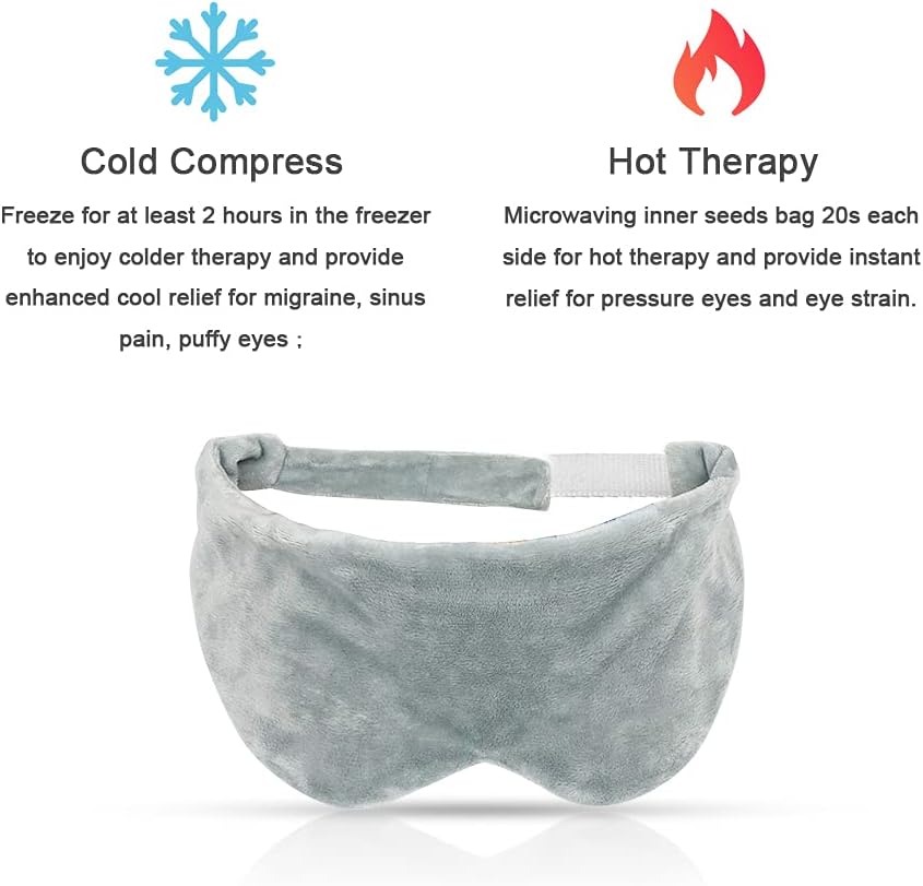 【ضاغط ساخن على البارد】- جمد لمدة ساعتين على الأقل في المجمد للاستمتاع بالعلاج البارد وتوفير تخفيف معزز بالبرودة للصداع النصفي وآلام الجيوب الأنفية والعيون المنتفخة. حقيبة بذور داخلية بالميكروويف 20 ثانية لكل جانب للعلاج الساخن وتوفر راحة فورية لضغط العينين وإجهاد العينين.