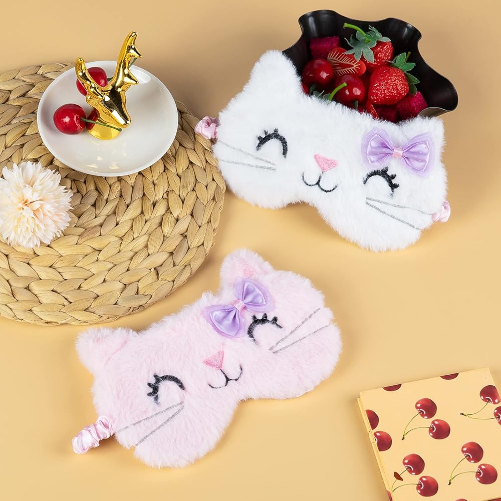 DAZAIGE 2 قطعة أقنعة نوم قطيفة ناعمة جميلة الكرتون القط كيتي العين قناع النوم غطاء العين للنساء الفتيات أطفال المنزل الطائرة السفر الراحة هدايا قيلولة ليلة النوم، الوردي + الأبيض