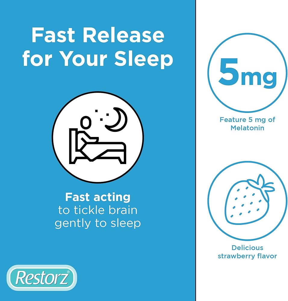 علكات النوم المريحة من ريستورز مع الميلاتونين 5 ملغ، 5 ملغ من علكات الميلاتونين مكملة لدعم دورة نوم صحية، نكهة الفراولة، 112 علكة