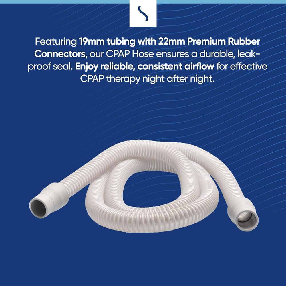 القدرة على الحركة والراحة: يبلغ طوله 8 أقدام، ويوفر مسافة واسعة ومرونة للخرطوم لزيادة حركة الرأس والجسم في السرير، وتسرب قناع CPAP.