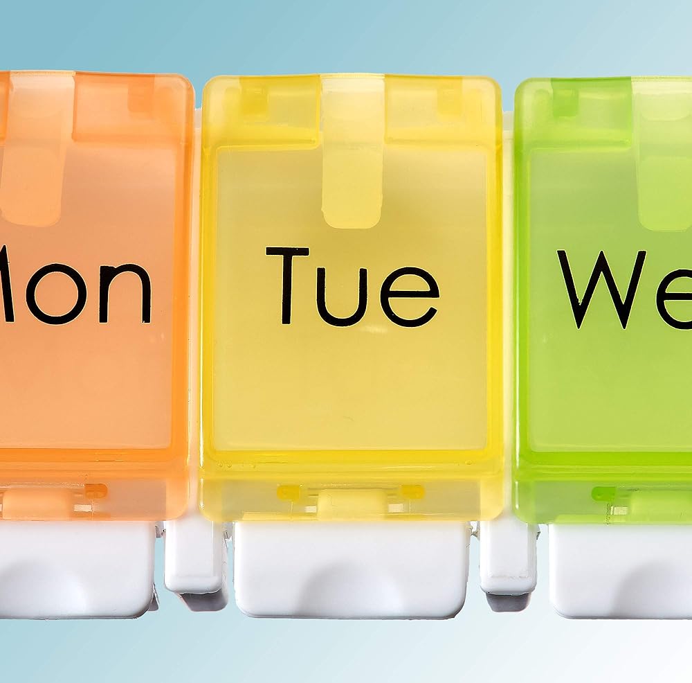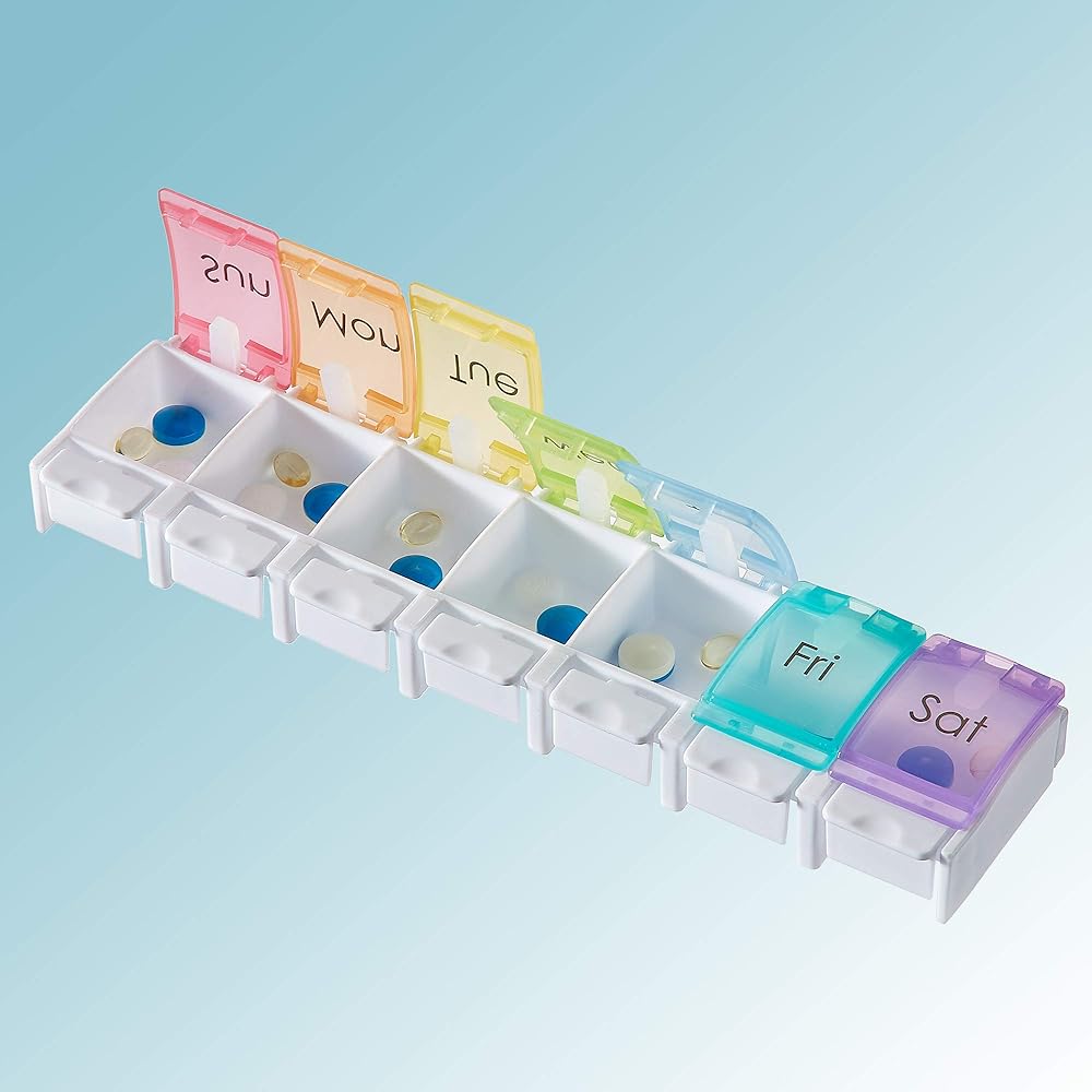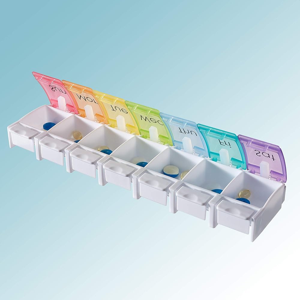 - مرمزة بالألوان - كل خلية مرمزة بالألوان بشكل فريد من يوم الأسبوع مع 7 مقصورات واسعة لتجنب الارتباك أو الخلط