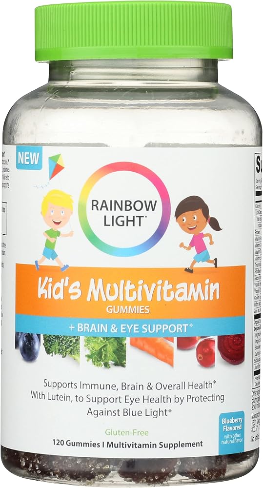 - علكات الفيتامينات المتعددة للأطفال من Rainbow Light، دعم الدماغ والعين، التوت الأزرق، 120 علكة