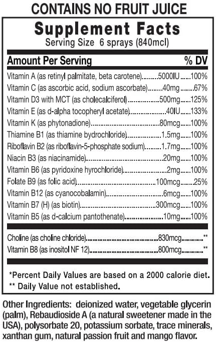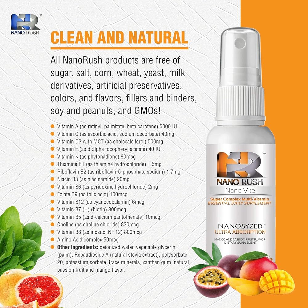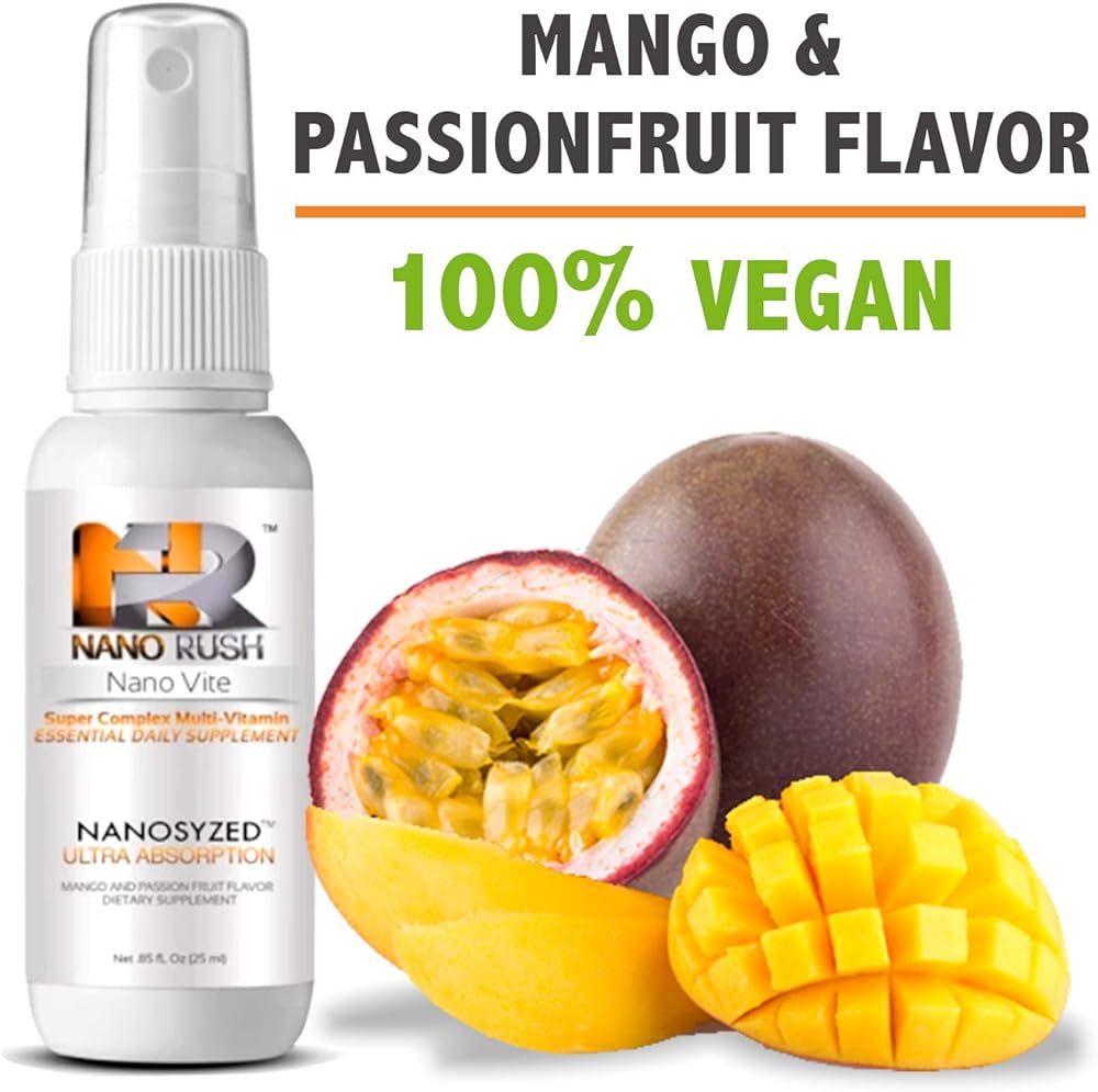 نانو راش سوبر كومبلكس متعدد الفيتامينات، رذاذ تحت اللسان مع تقنية النانو لامتصاص فوري وكامل بدون حبوب، نكهة المانجو وفاكهة العاطفة، 85 أونصة سائلة