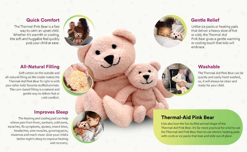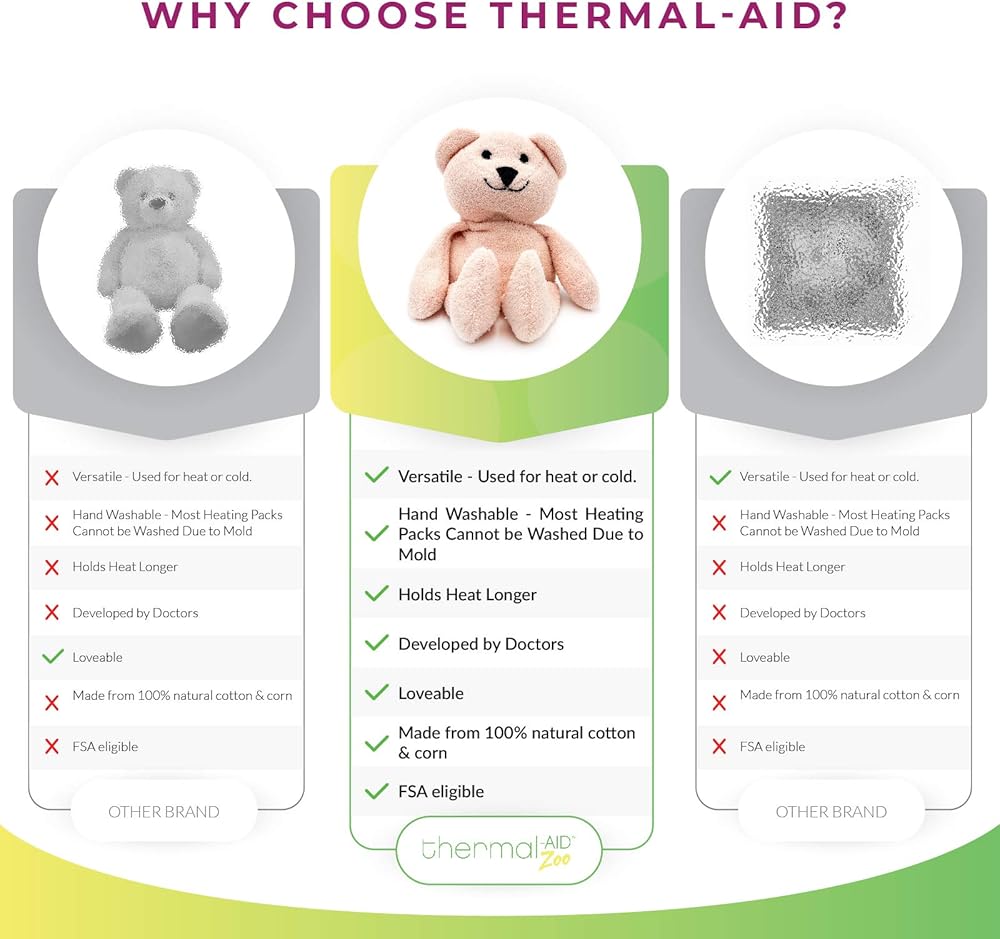 العناية الطبيعية: لا يحتوي على مواد كيميائية، فقط مزيج من القطن وعنصر تسخين وتبريد يعتمد على الذرة، مما يوفر علاجًا طبيعيًا وفعالاً لأطفالك الصغار.