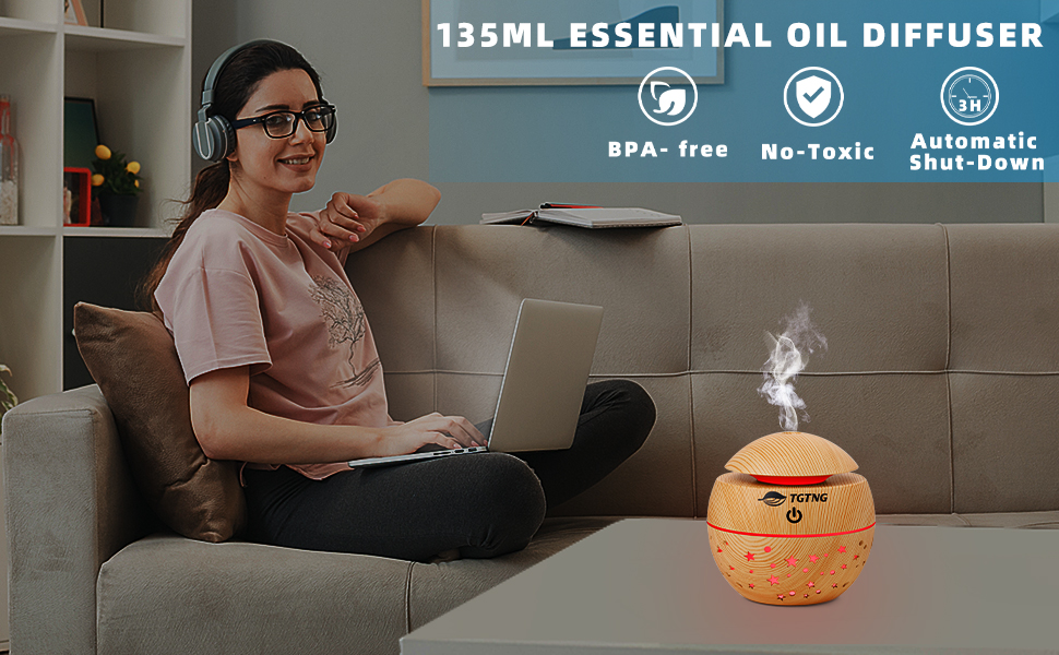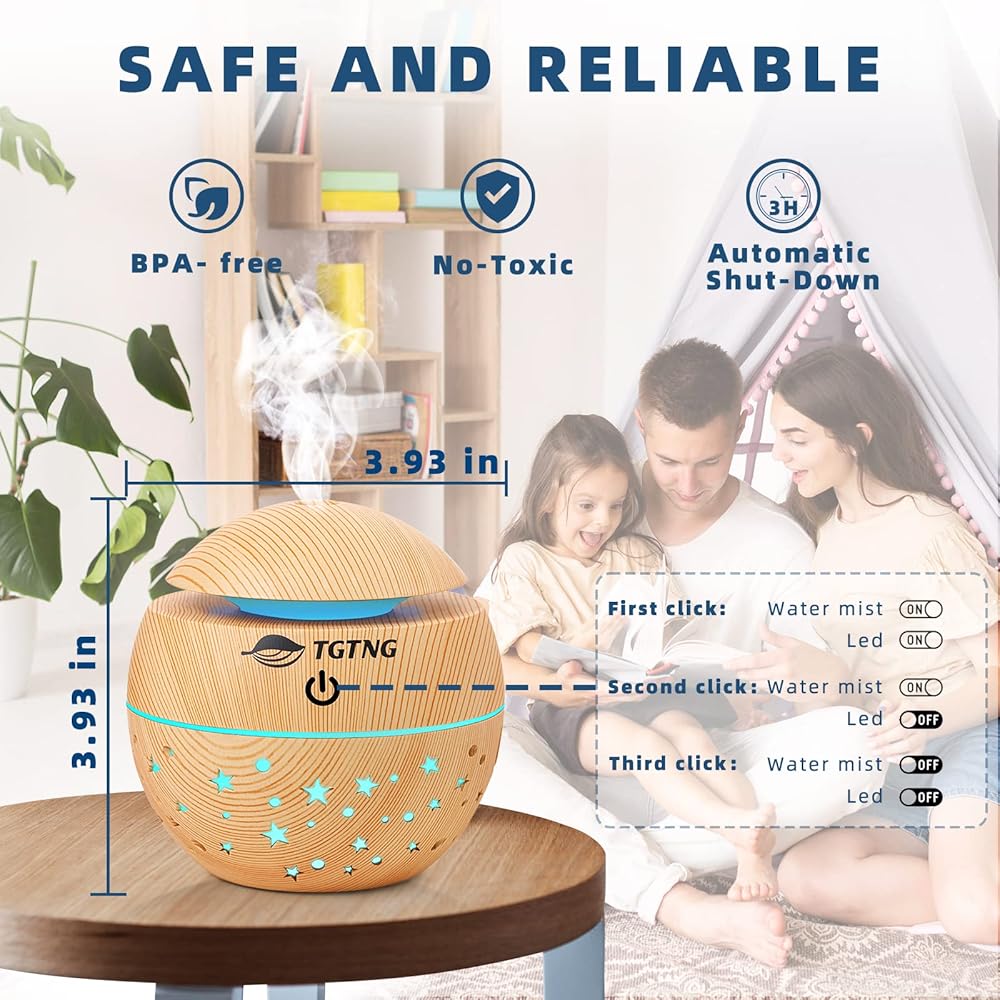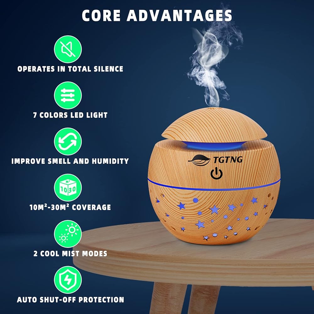 موزع روائح الزيوت العطرية TGTNG، ناشر للعلاج العطري، مرطب الهواء، موزع هواء رذاذ بارد بالموجات فوق الصوتية مع تصميم منخفض الضوضاء، ضوء LED بـ 7 ألوان، هدية الترحيب بالمنزل الجديد للمنازل الجديدة