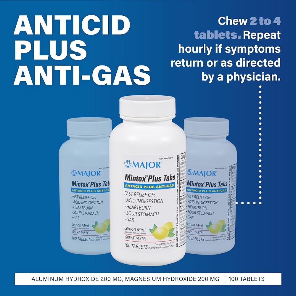 تخفيف سريع لحرقة المعدة وعسر الهضم الحمضي والضغط والانتفاخ، نكهة الليمون، 100 قرص قابل للمضغ مقارنة بمالوكس بلس القابل للمضغ
