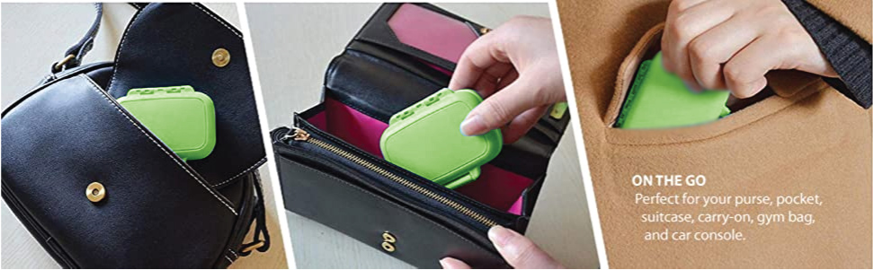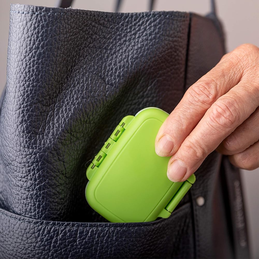 جراب حبوب للجيب أو المحفظة: المقاسات 80 مم (3.15 بوصة) طول، 65 مم (2.56 بوصة) عرض و25 مم (0.98 بوصة) إرتفاع. الحاوية اليدوية الجديدة تناسب راحة يديك. يوفر تصميمًا نحيفًا ومحمولاً ليأخذ مساحة أقل مع الحفاظ على نظافة حيوانك الأليف بشكل أنيق وسرية أكثر. مثالية لحقيبتك، وجيبك، وحقيبة حقيبتك، وحقيبة السفر، وحقيبة الصالة الرياضية، ولوحة التحكم في السيارة.