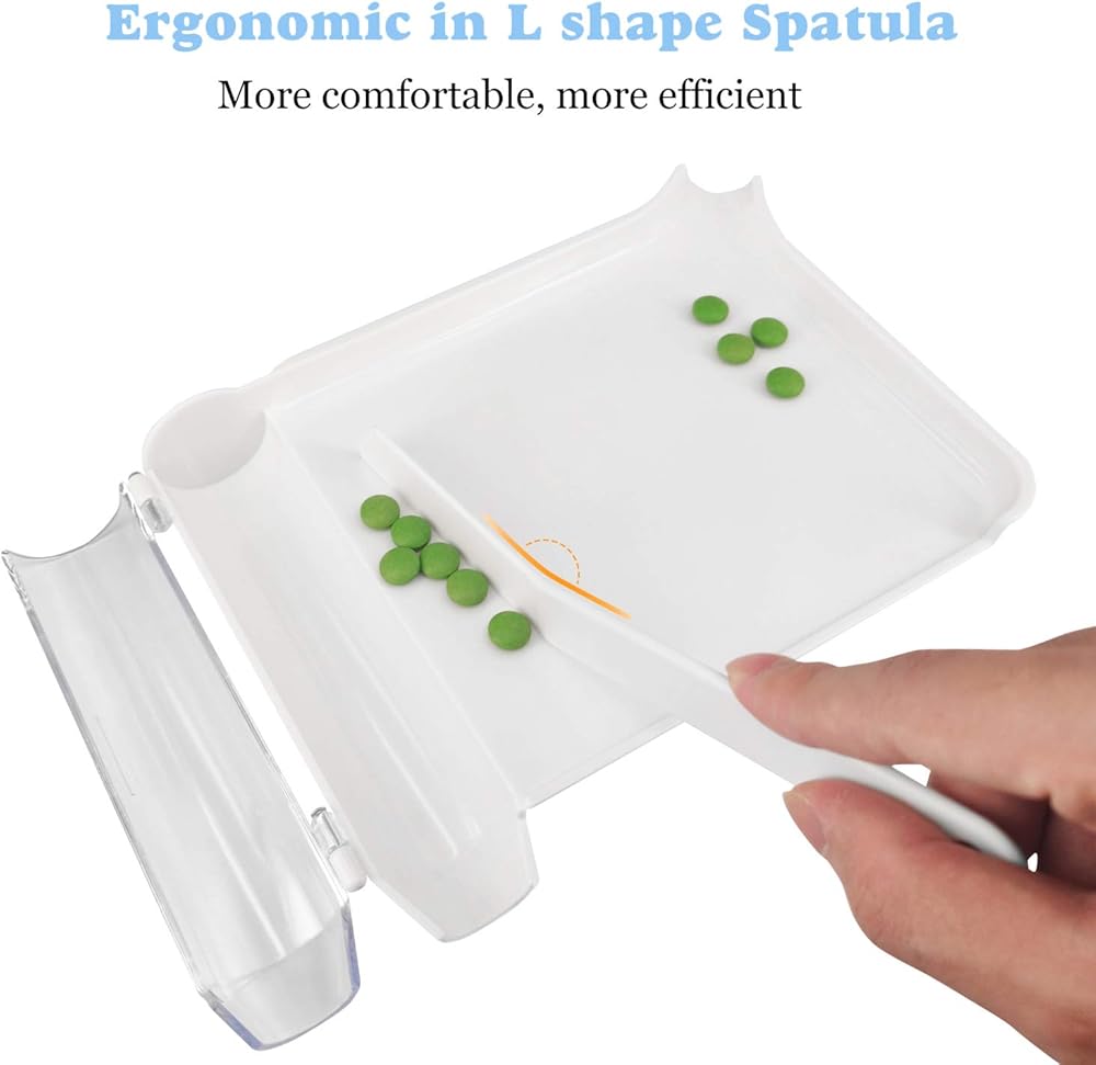 صينية العد على الطراز الكلاسيكي للاستخدام المنزلي أو الصيدلانية الاحترافية. تم تصميم الصينية لتجلس بشكل مسطح تمامًا بحيث لا تتدحرج الأقراص المستديرة، مثل أغطية الجل وتجمعها على جانب أو آخر. تتضمن معظم الشرائح حافة صغيرة بين منطقة العد والغرفة أو المزلاج. مع بعض أشكال الحبوب، يمكن أن تبطئ التدفق. تصميم الجراب الخاص بنا يزيل الحافة لجعل الطريق من الصينية إلى السحب أكثر سلاسة وأسرع.