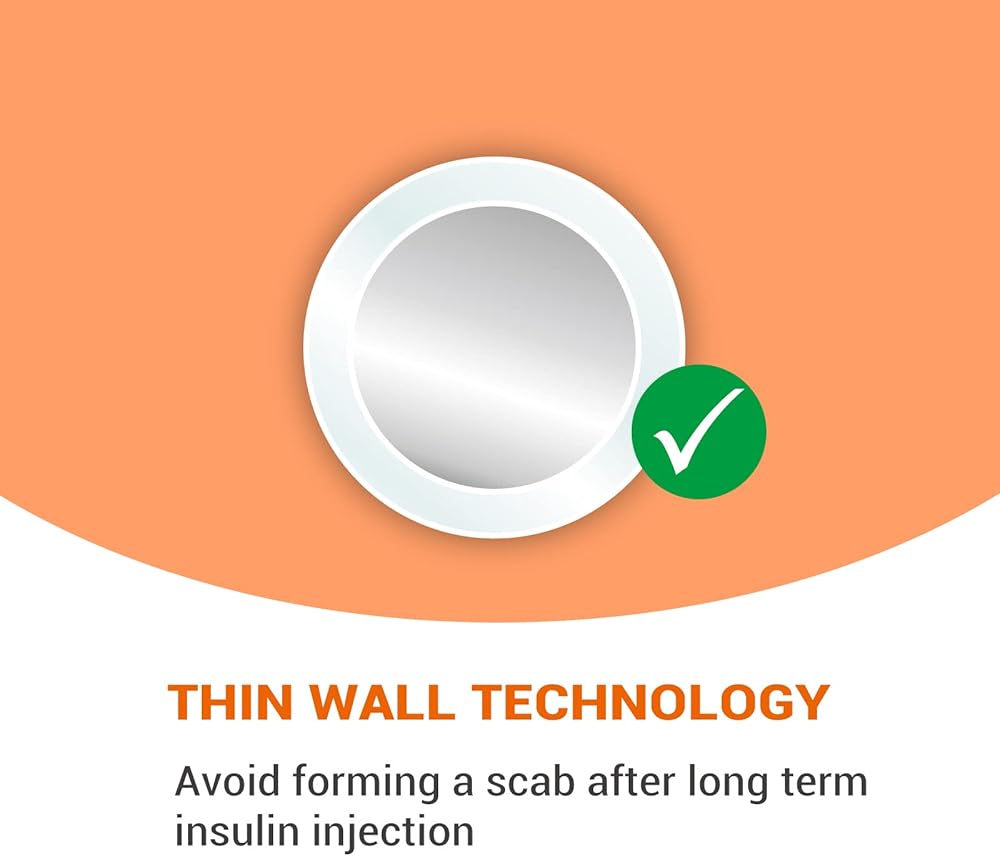 • الاستخدام المريح: إبر القلم التي تستخدم لمرة واحدة لدينا مناسبة لمجموعة متنوعة من مواقع الحقن المفضلة. قم بلف وإرفاق إبرة جديدة ونظيفة بسهولة بقلم توصيل الأنسولين الخاص بك من أجل الحقن.