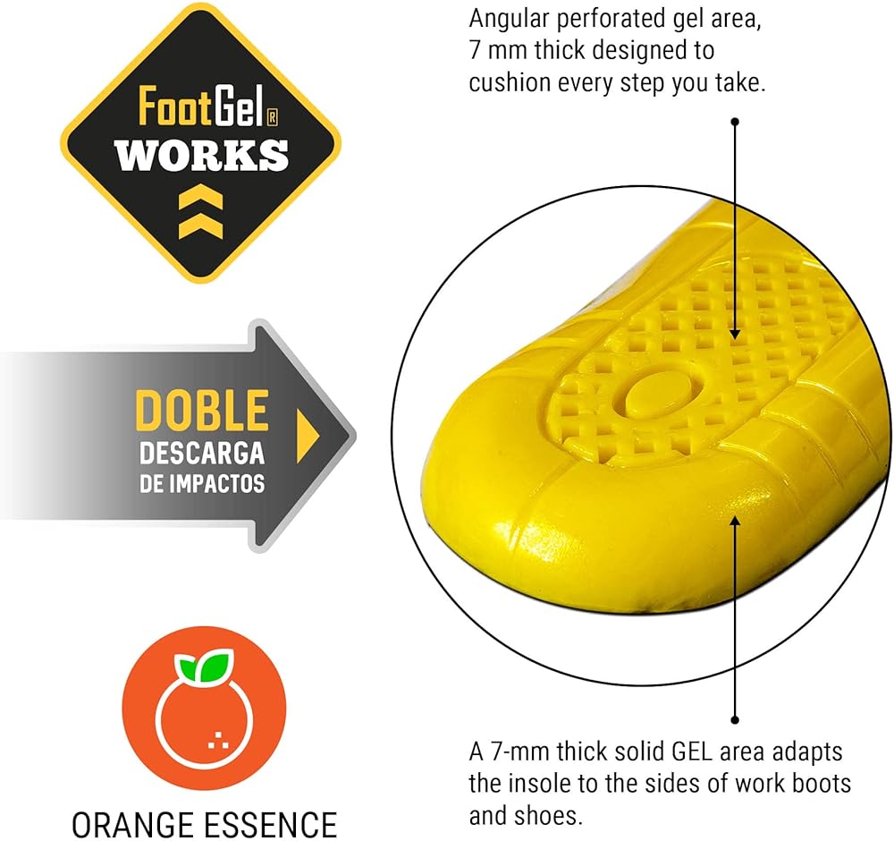 يعمل FOOTGEL على تخفيف الألم برائحة برتقالية دائمة - نعال مريحة للخدمة الشاقة تناسب جميع أحذية العمل - شهادة نباتية وطبية - يمكن غسله في الغسالة. الحجم XL (الرجال 13 إلى 17)