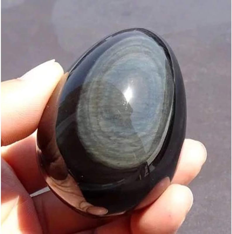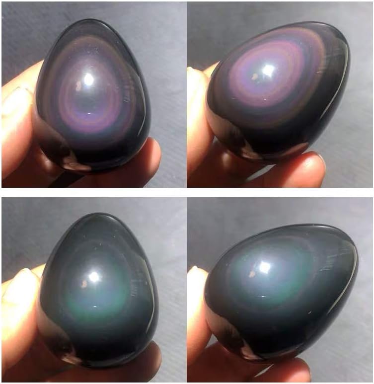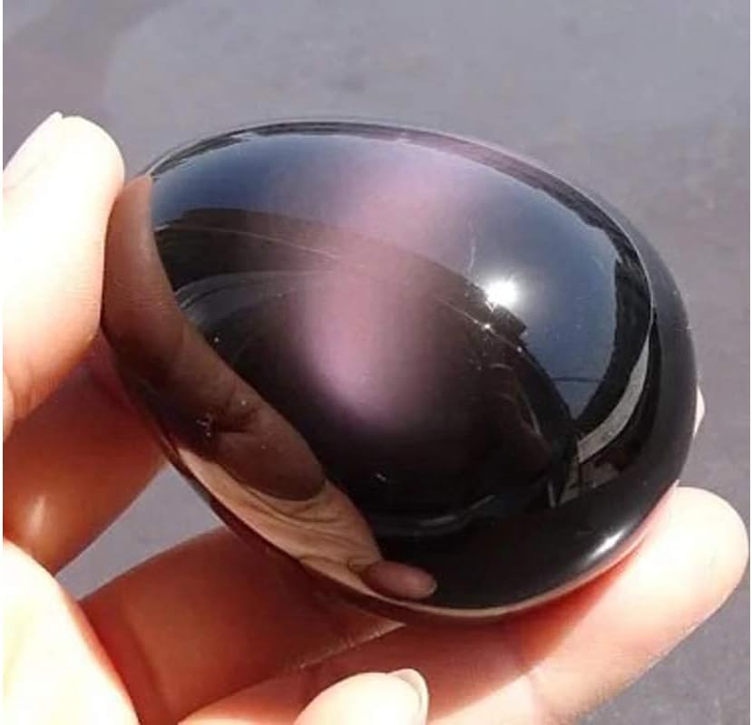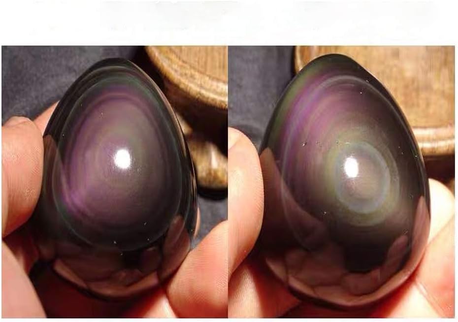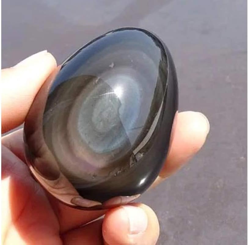 عين قوس قزح السحرية - إنها مجرد كرة سبج سوداء عادية تحت الضوء العادي. ولكنك ستشاهد عين قوس قزح عند استخدام ضوء الهاتف المحمول أو الأضواء الأخرى، هذا هو البريق السحري لحجر السج عين قوس قزح