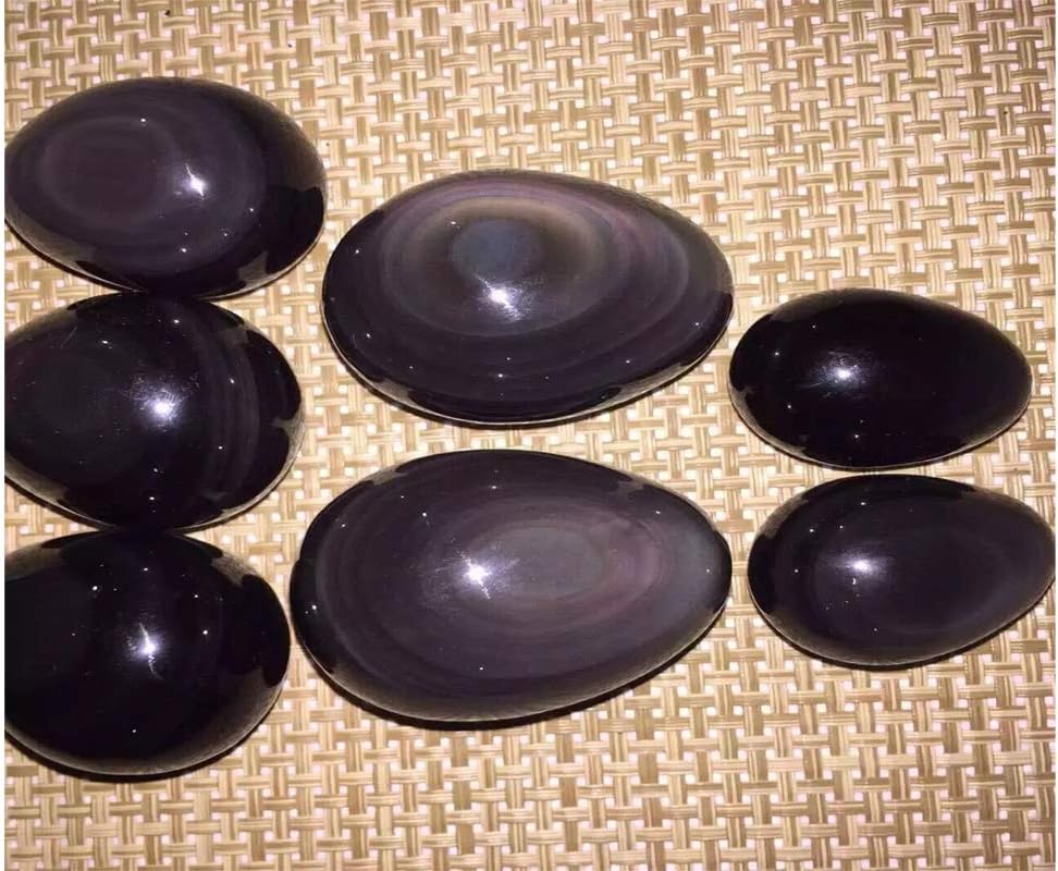 اللونحجر السج الأسود مع شكل عين قوس قزح على شكل بيضة