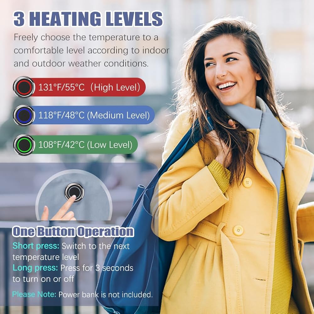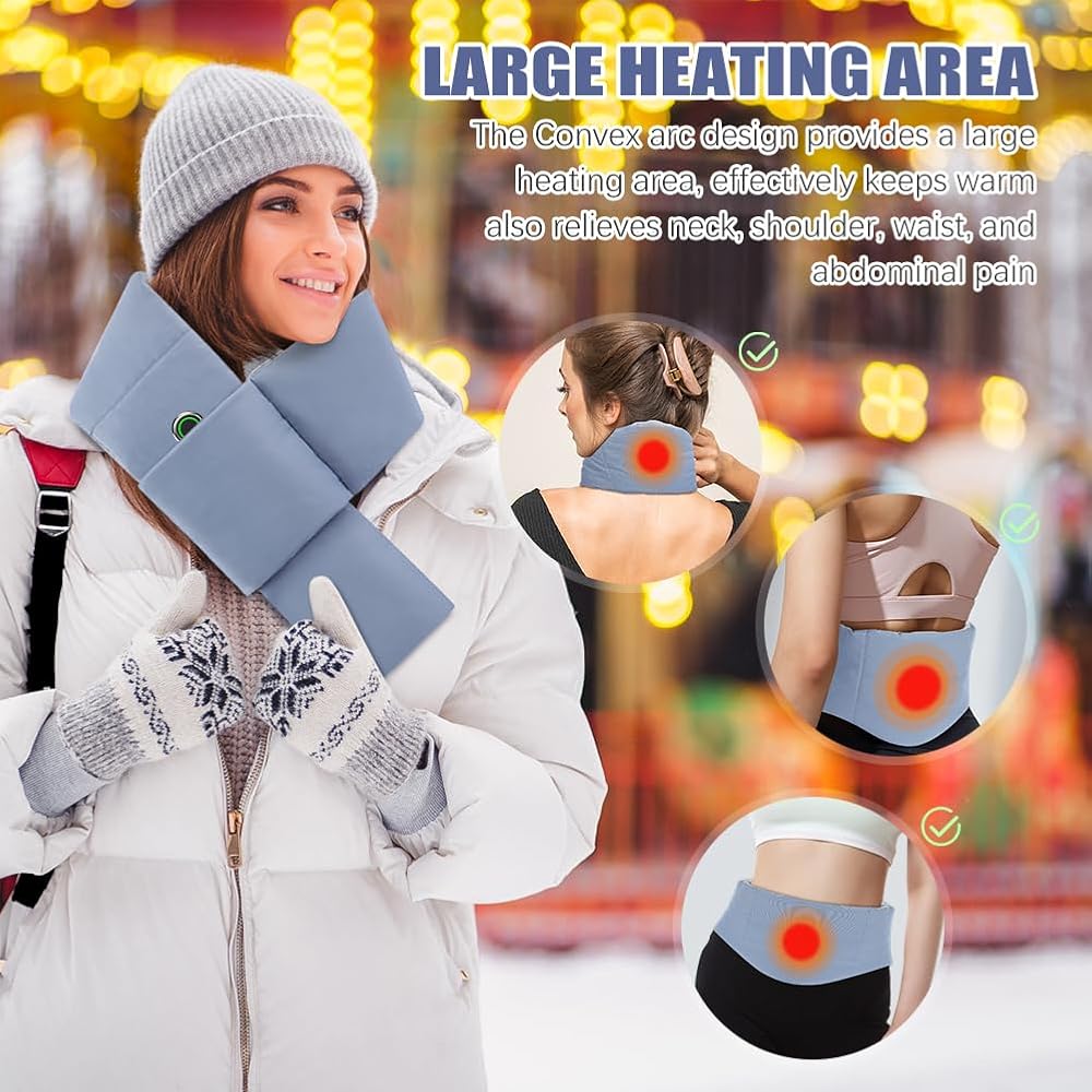 ☃ حافظ على الدفء في أي وقت وفي أي مكان ☃ وشاح التسخين القابل لإعادة الشحن عبر USB مثالي للأنشطة الداخلية والخارجية، مثل التزلج وصيد الأسماك على الجليد ورحلات التخييم والمشي لمسافات طويلة، وما إلى ذلك. مثالي أيضًا للاستخدام في المنزل والمكتب وغرفة النوم والمزيد. يمنع بشكل فعال قضمة الصقيع ويحافظ على الدفء في الشتاء البارد، كما يحسن الدورة الدموية ويخفف آلام الرقبة والكتف. يمكنك تخفيف الألم أو الحصول على الدفء في أي لحظة.