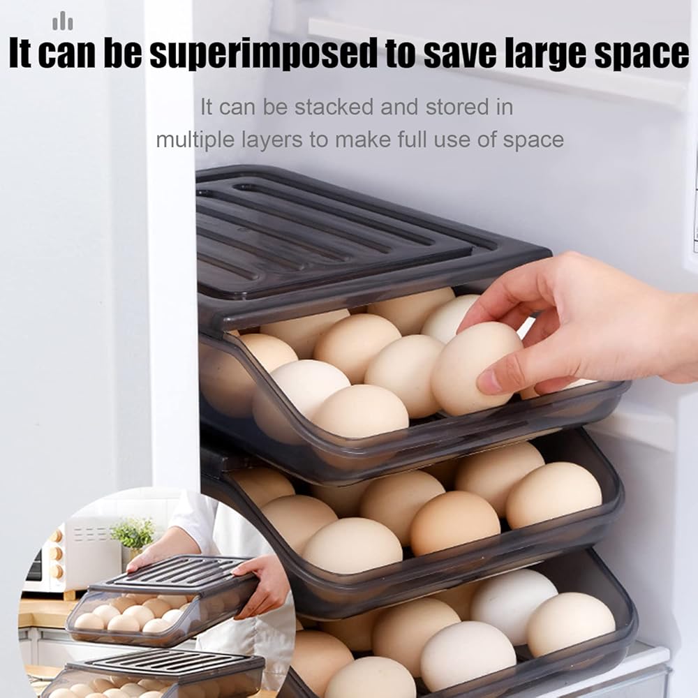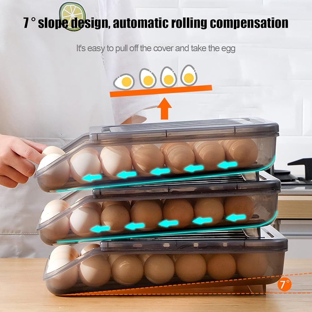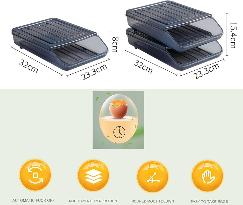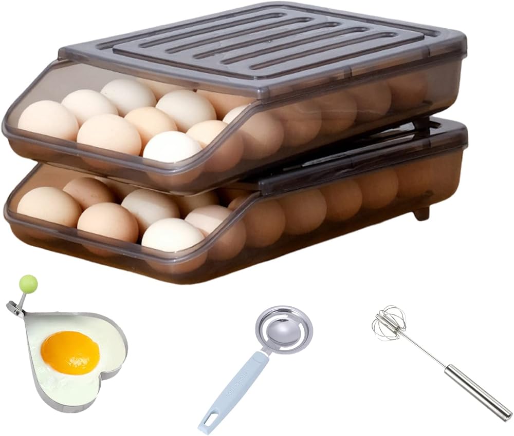 JZ 2 Pack Refrigerator Egg Trays,Auto Scrolling Egg Holder For Refrigerator with Egg divider,Press Type Whisk,Egg fryer,Stackable Fridge Egg Organizer,Stores 42 Eggs Total