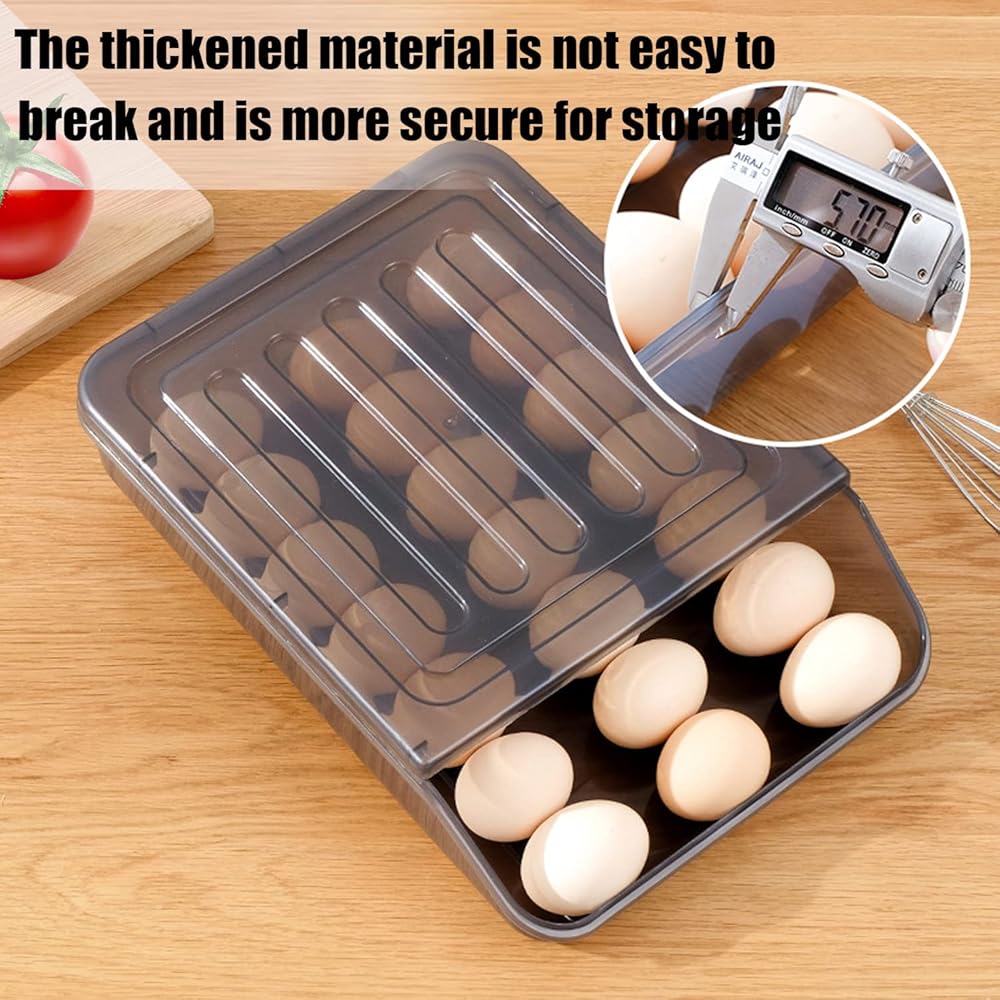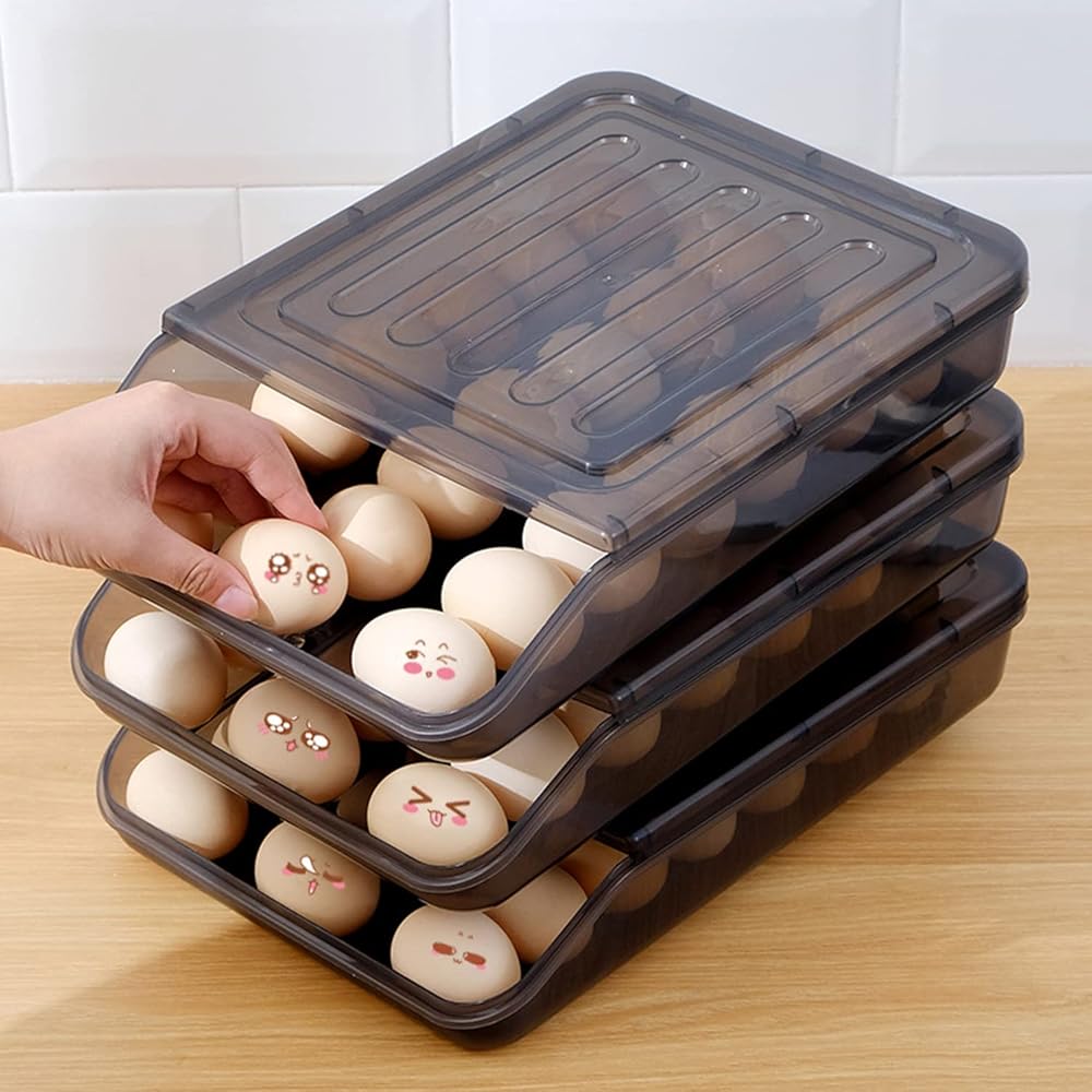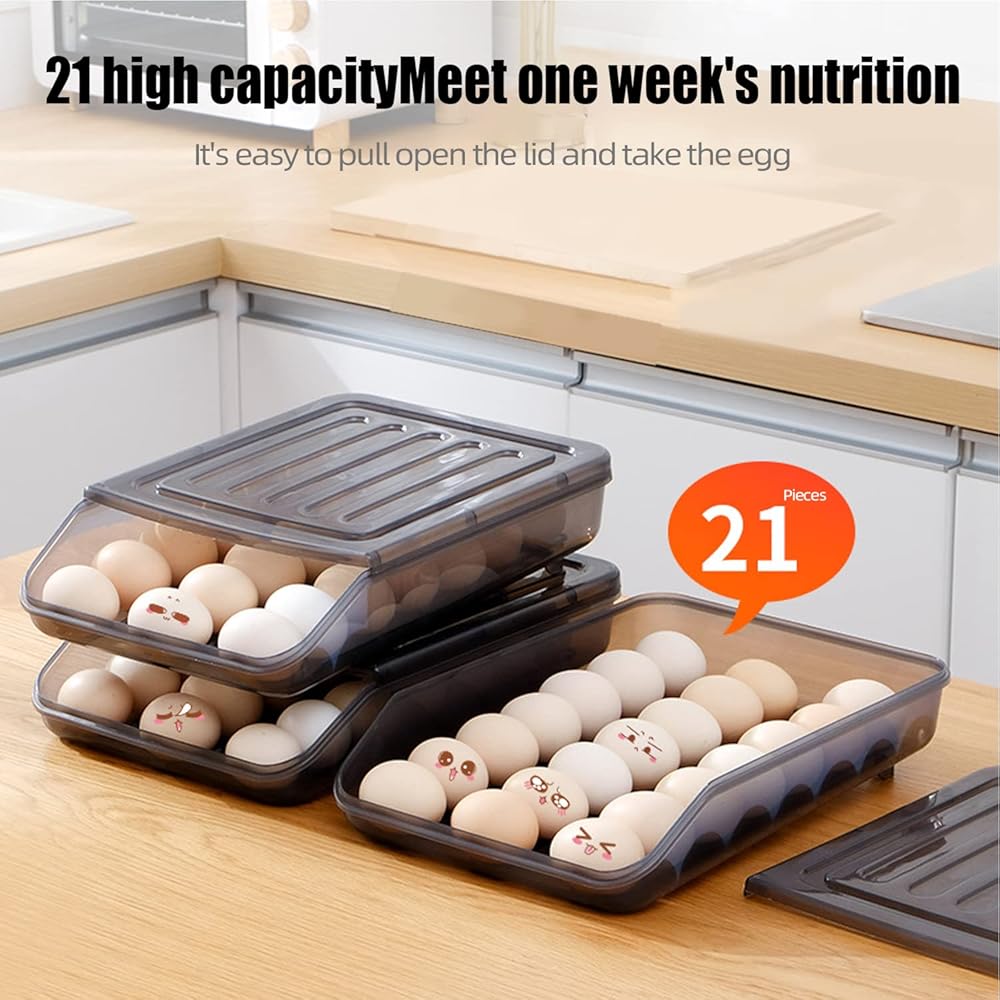 JZ 2 Pack Refrigerator Egg Trays,Auto Scrolling Egg Holder For Refrigerator with Egg divider,Press Type Whisk,Egg fryer,Stackable Fridge Egg Organizer,Stores 42 Eggs Total