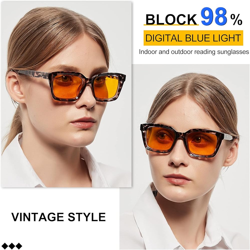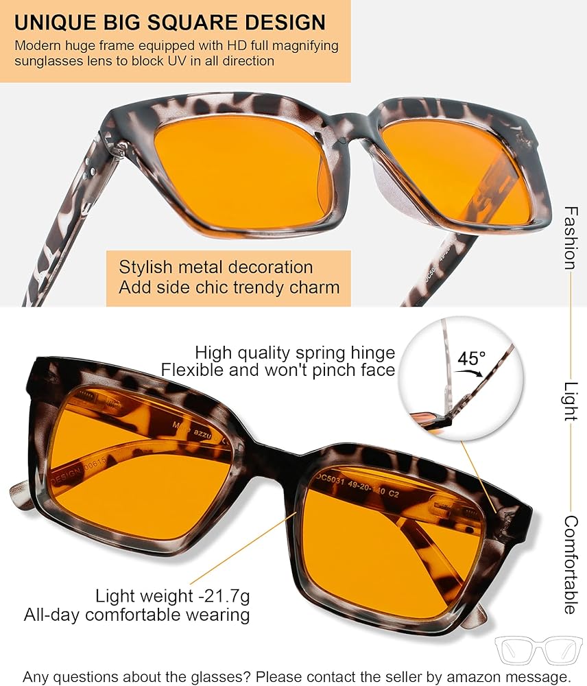 😉 نظارات شمسية بإطار ضخم فريد من نوعه 2.0 - مع عدسة ترشيح للضوء الأزرق الكهرماني تحجب بشكل فعال 100% من الأشعة فوق البنفسجية والوهج الناتج عن الزجاج والماء والثلج لتسهيل التركيز على الأنشطة الداخلية والخارجية، مثل القراءة والعمل المكتبي والاستمتاع الوقت الرقمي، أو التسوق، أو العطلات، أو التجمعات، أو الترفيه أو حسب صيحات الموضة. (ملاحظة: ليست ثنائية البؤرة!)
