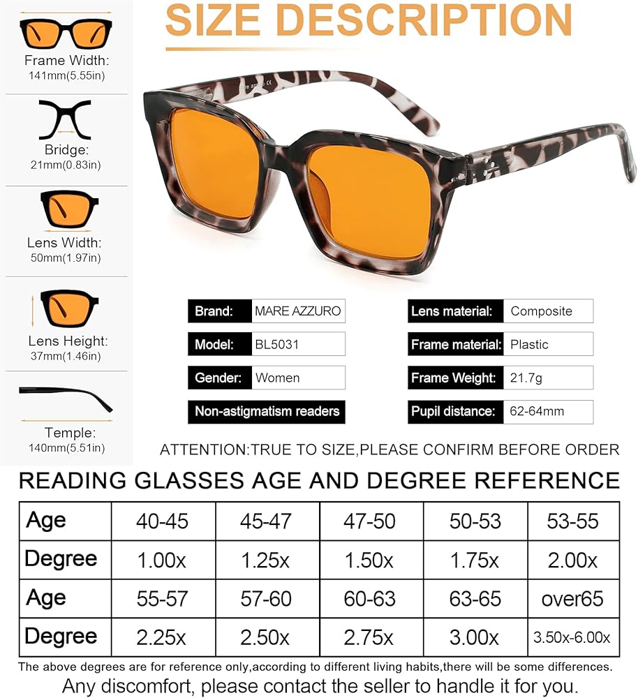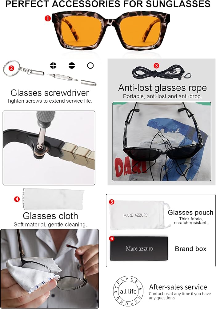 🎁 قيمة رائعة: نظارات قراءة الشمس السوداء +2.00؛ مفك براغي للنظارات؛ حقيبة محمولة؛ قطعة قماش ناعمة؛ حبل نظارات مضاد للضياع؛ معبأة في صندوق العلامة التجارية كهدية جميلة للأم أو الزوجة أو الصديق أو سحر نفسك! لا توجد مخاطرة في اختيار MARE AZZURO بسبب خدمة استرداد الأموال أو الاستبدال مجانًا لمدة 90 يومًا وضمان مدى الحياة في حالة عدم الرضا أو التلف.