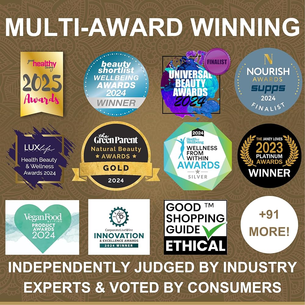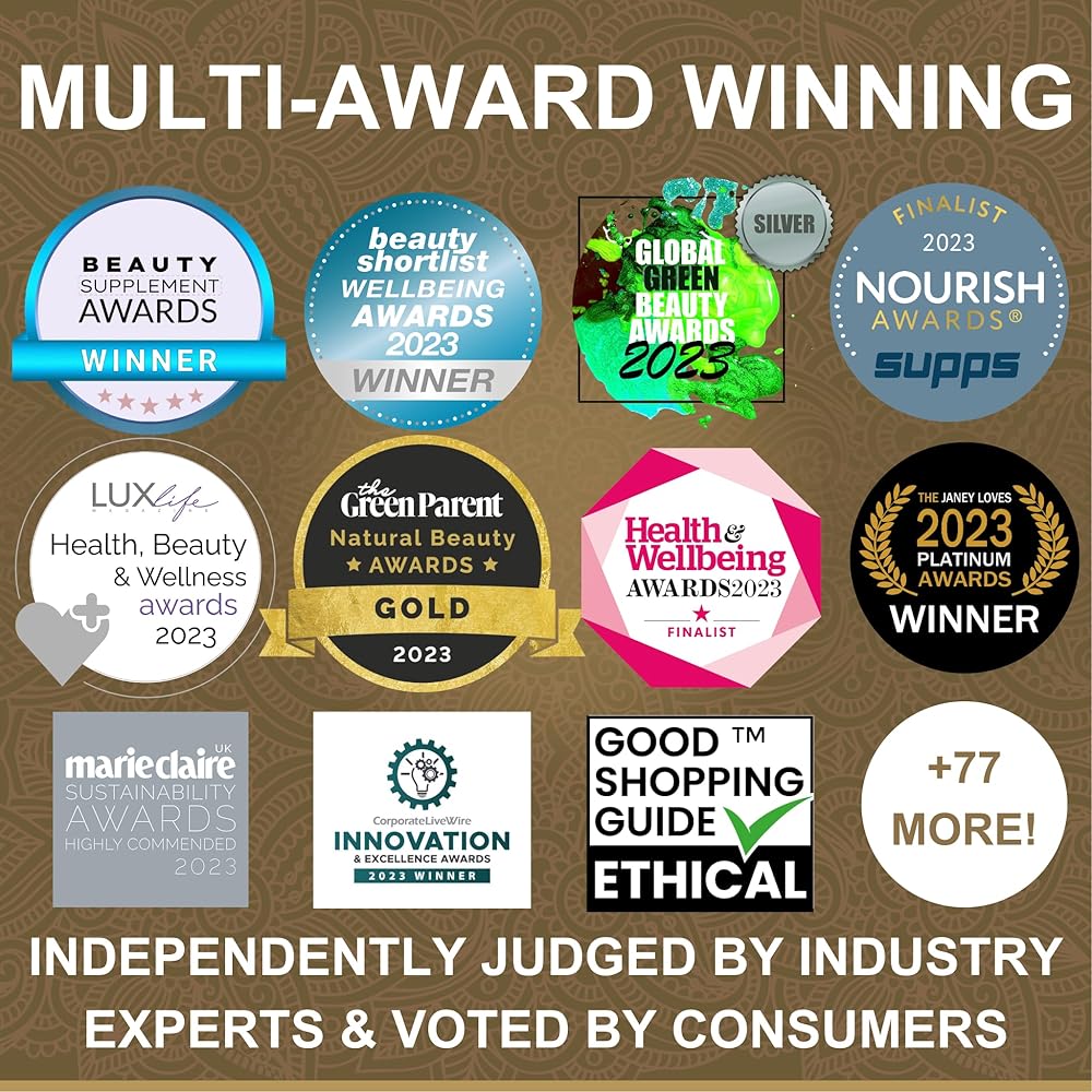 🏆 التميز الحائز على جوائز مع ترو فيدا: ثق في علامة تجارية تواكب الحديث. باعتبارنا شركة أخلاقية تديرها عائلة، فإننا ندعم الصحة والعافية. الجوائز التي حصلنا عليها تتحدث عن الكثير وتشمل "قائمة الجمال المختصرة - أفضل علامة تجارية للمكملات الغذائية الصحية لعام 2023" ✝ و"المكملات الغذائية الموصى بها بشدة من ماري كلير - جوائز الاستدامة 2023" ✝. يذهب جزء من أرباحنا دائمًا إلى الأعمال الخيرية، مما يعكس روحنا: "عالمنا، صحتك". انضم إلى عائلة True Veda واتبع أسلوب حياة أكثر صحة!