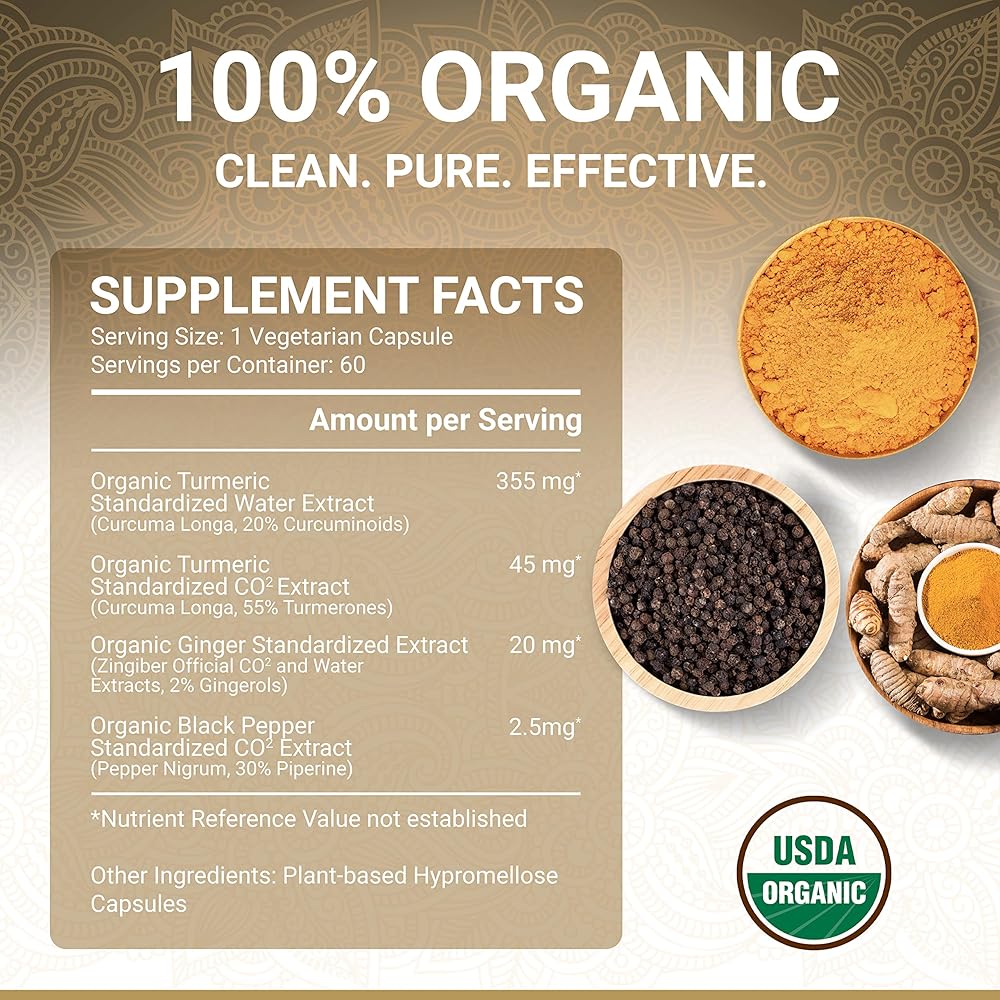 🌱 عضوي معتمد من وزارة الزراعة الأمريكية، شفافية موثوقة: استمتع بالنوم بسهولة مع العلم أنك تغذي جسمك بالأفضل. تعتبر شهادة العضوية التابعة لوزارة الزراعة الأمريكية بمثابة شهادة على التزامنا بالجودة. أقراصنا العشبية مليئة بالكركم والزنجبيل والفلفل الأسود العضوي، وهي صديقة للنباتيين وخالية من مسببات الحساسية الشائعة. لا يحتوي على مواد مالئة أو مواد رابطة، فقط فوائد عضوية نقية في كبسولات سهلة البلع.