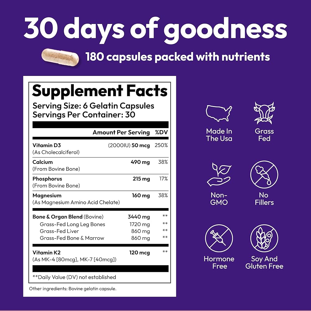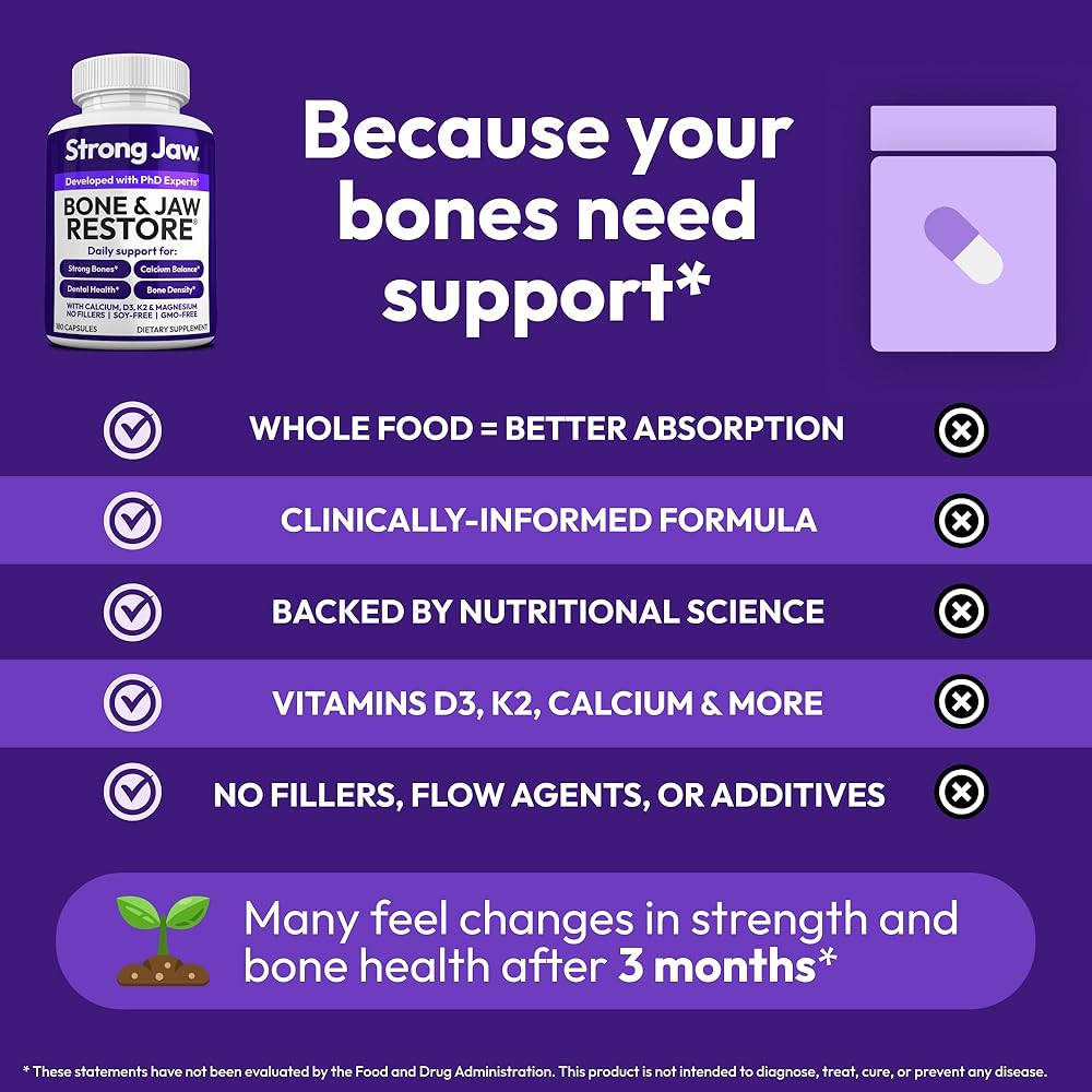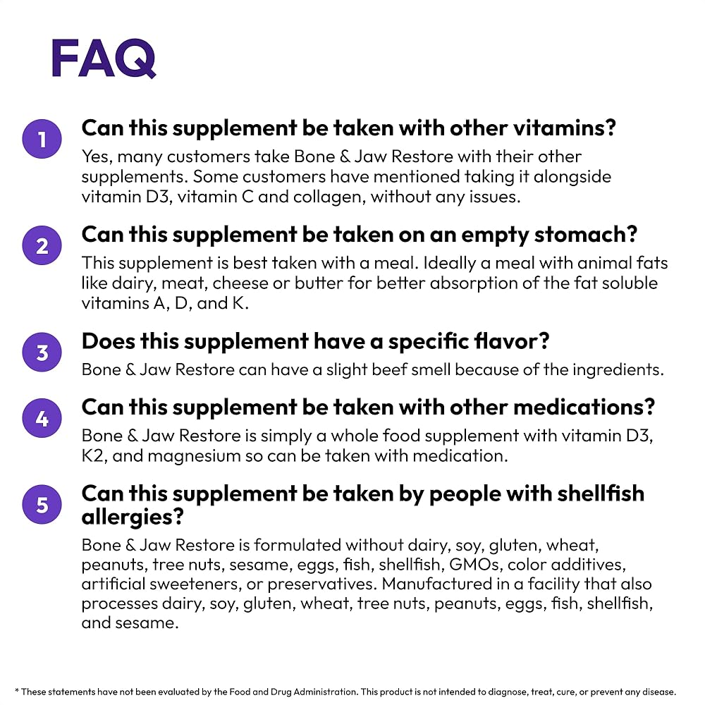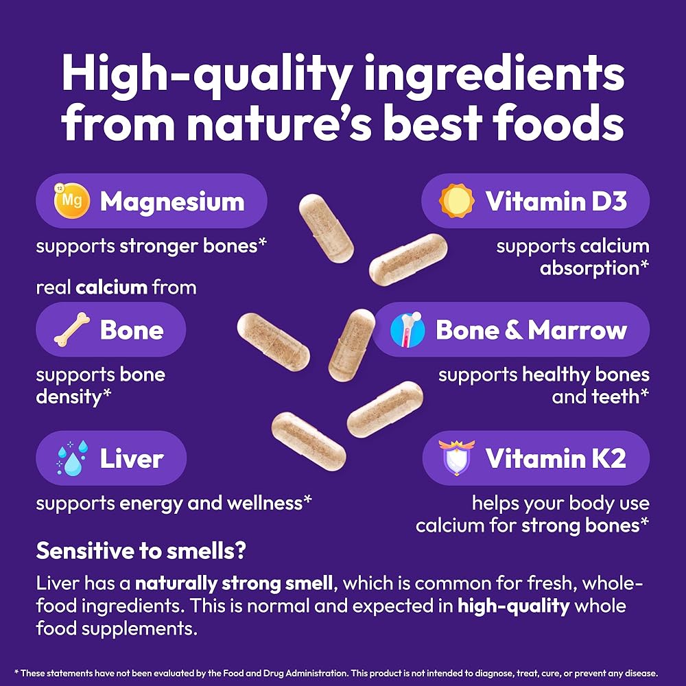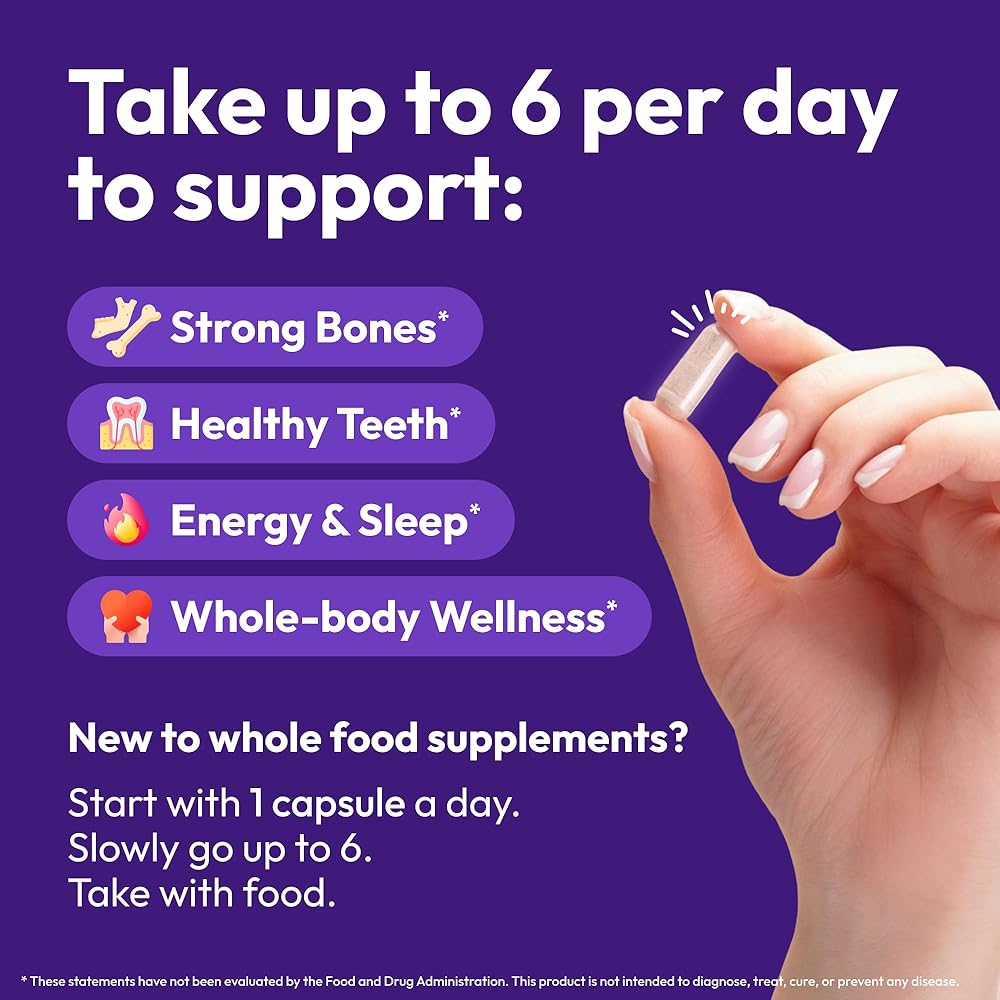 • مصدر التغذية الغذائية الكاملة: يوفر مكملنا الغذائي التغذية التي يمكن أن توفرها الأطعمة الكاملة فقط (والمكملات الغذائية الكاملة) لدعم المتطلبات الغذائية العالية للأسنان الصحية. من خلال إضافة فيتامين د3 لصحة الأسنان، ونمو العظام، والتحكم في المناعة، وصحة القلب والأوعية الدموية، إلى جانب المغنيسيوم، الضروري للعديد من وظائف الجسم وحاسم لنمو الأسنان والعظام، يضمن منتجنا أن جسمك يمكنه استخدام الكالسيوم والفوسفور بشكل فعال لتقوية العظام والعظام. أسنان