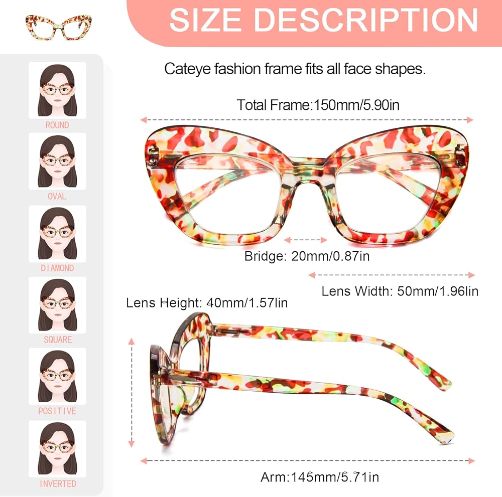 • الحجم: عرض العدسة: 50 ملم، ارتفاع العدسة: 40 ملم، جسر الأنف: 15 ملم، العرض الإجمالي: 150 ملم.