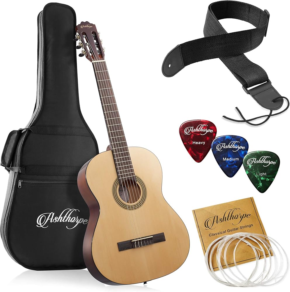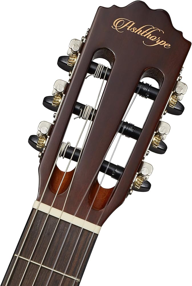 اشثورب الغيتار الصوتي الكلاسيكي مثالي للاعبين من أي مستوى. تم صقل هذا الجيتار بالحجم الكامل مقاس 39 انش بأناقة بنمط وردة مصمم بشكل معقد وألوان طبيعية غنية ولمسة نهائية شديدة اللمعان. سيبدو أي لاعب وكأنه عازف جيتار كلاسيكي محترف أثناء إنشاء ألحان كاملة على هذا الجيتار الأيمن